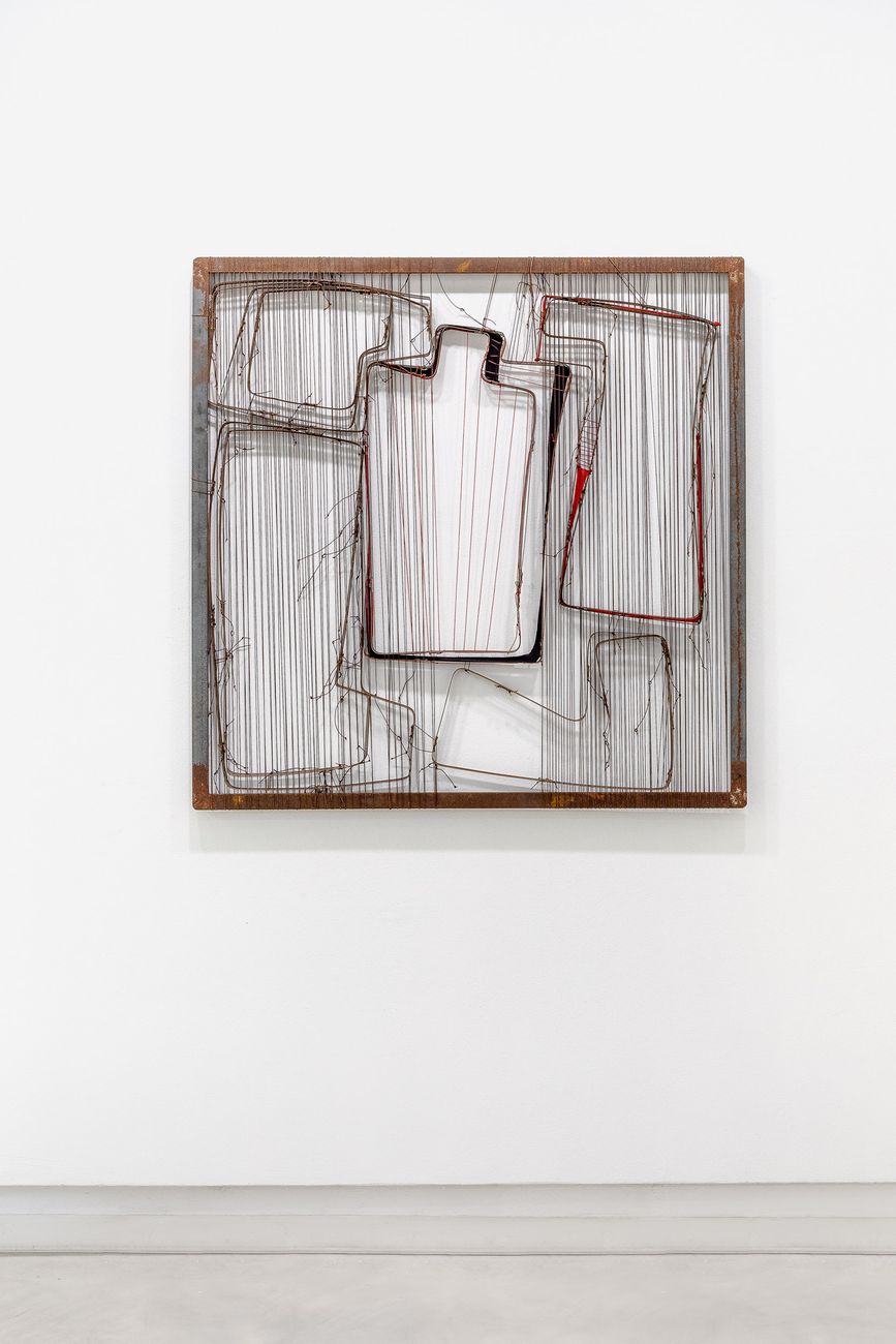 Se gli arazzi di Maurizio Donzelli combinano l’artigianalità della tecnica all’eco di Bramantino e delle macchie di Rorschach, le sculture cartacee di Alice Pedroletti toccano l’ambivalenza della fragilità che contraddistingue l’essere nel mondo, fil rouge, sebbene in termini opposti, delle opere in ferro, filo e tessuto di Verónica Vázquez. La corposità della materia e la sua assenza si alternano nei lavori di Athanasios Argianas e Antonio Scaccabarozzi, riuniti nella project room: gli oggetti impressi da Argianas nel gesso controbilanciano gli angoli essenziali di Scaccabarozzi, in un discorso che cita la forma come guida e cifra del reale.