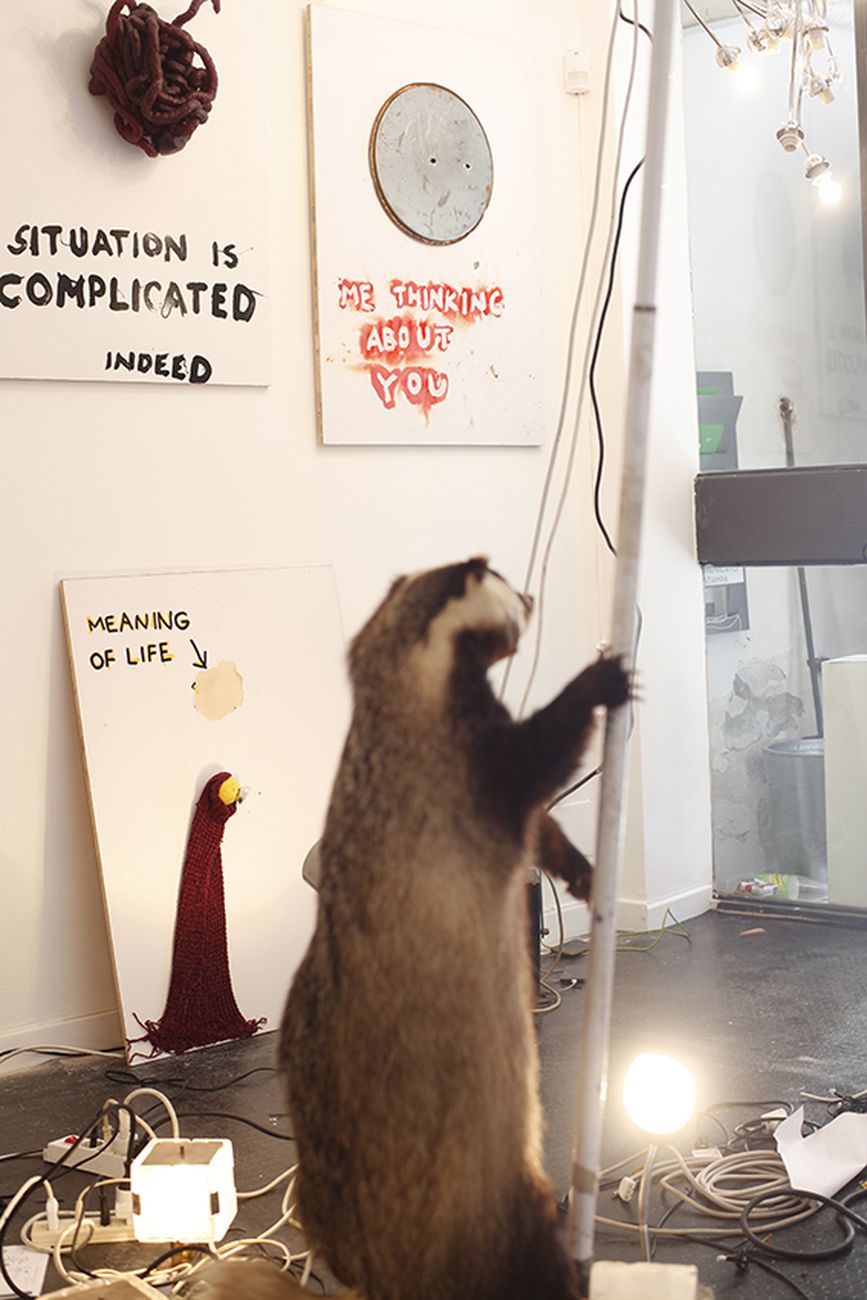 Intensa, ironica e malinconica, l’arte di Krištof Kintera (Praga, 1973) rappresenta la ricerca di una strategia di sopravvivenza in un mondo in lento e inesorabile disfacimento. L’uso di rifiuti e materiali di recupero, nelle installazioni e nelle tavole ‒ che l’artista chiama drawings, sottolineandone la natura di schizzo, quasi di ipotesi progettuale ‒ esprime la volontà di ricercare un senso, di ricostruire, di reinserire idee e sentimenti in un contesto sociale disperato e disumanizzante.