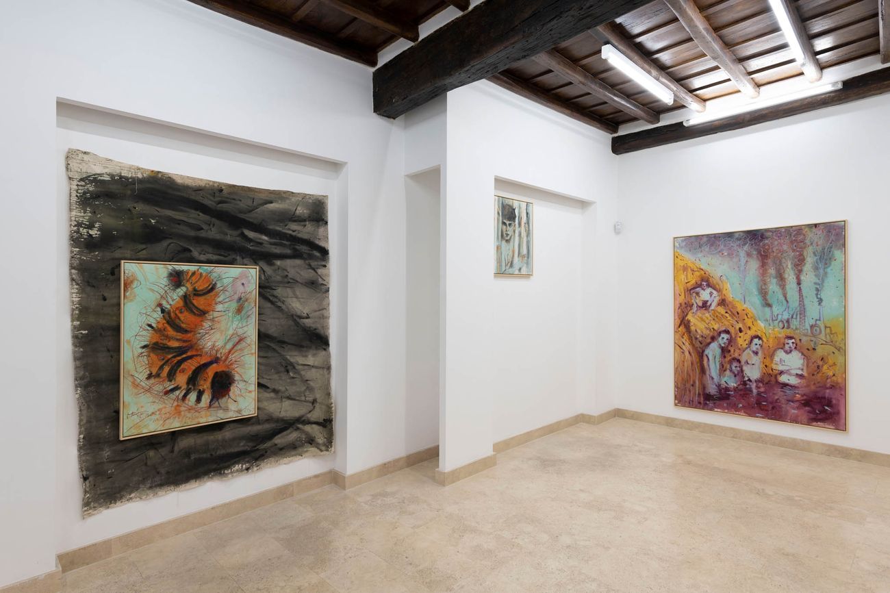 Con una pittura vivace e fortemente estroflessa per farsi tutt’uno con lo spazio espositivo, l’artista elabora un discorso che, è lui stesso a evidenziarlo, “riguarda fondamentalmente il sesso e la natura”: due nuclei uniti tra loro da una pennellata volutamente infantile e da immagini in cui si ritrovano bruchi, ragazzi ammiccanti, scenari industriali che avvelenano l’aria, l’acqua, la terra. “Da quando ho comprato casa in un villaggio in Slovacchia sono molto più attento alle problematiche ambientali: vedo costantemente i miei vicini che annaffiano gli ortaggi e i frutti con prodotti chimici, e il modo di tagliare l’erba molto corta che sembra un deserto verde”.