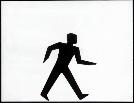 Il tempo azzerato, dicevamo. La pratica della serialità contagiava oggetti sottoposti a processi d’astrazione, isolati, freddamente ripetuti, da assemblare come moduli regolari (Cubi smontabili, 1966); ma anche riduzioni grafiche di silhouette umane, prima a evocare gli omini dei semafori e dei segnali stradali, poi a rappresentare sagome-bersaglio e infine a ricalcare la figura dell’artista stesso (fra tutte la serie Séparé, già esposta alla Galleria Nazionale d’arte Moderna di Roma nel 2007). Un meccanismo insieme visivo e cronologico. Si spingevano così verso il grado zero il volume e la concretezza delle forme, l’energia della natura, la voluttà dei colori ricondotti a tonalità piatte, mentre la linea progressiva della storia veniva messa in discussione. Sconfitta la logica inflessibile del tempo e della materia, si puntava a una trasposizione liricamente universale, diacronica, immateriale.