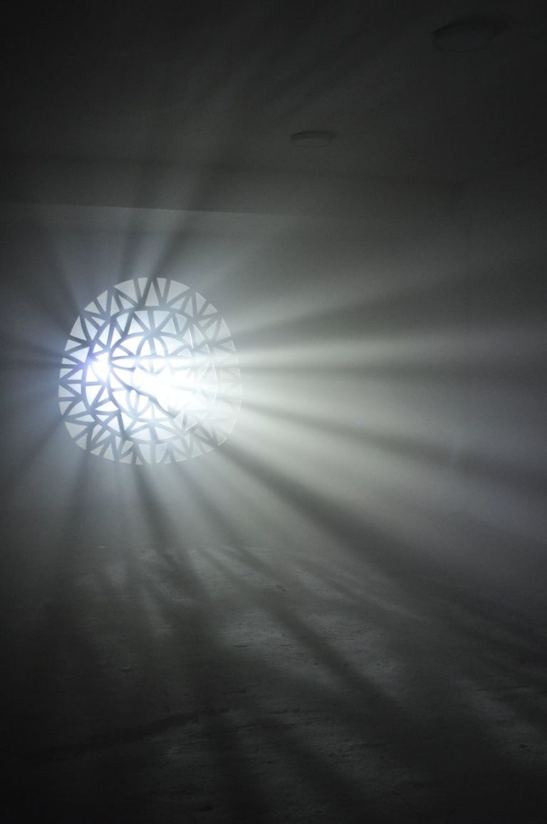 Una diafana luce trapassa l’ordito dell’opera di Salvatore Manzi (Napoli, 1975), riverberandosi nello spazio della galleria, saturo del fumo rarefatto che ne offusca la percepibilità, per rendersi fenomenica e rivelatrice di quel “luogo secondo”, il Deuteroluogo, oltre il quale lo spettatore è condotto. Questi, spinto al di là di una soglia, alla deriva dell’essere, è partecipe di una dimensione altra, allusiva di un’alterità aprioristica e spirituale, originata a partire dall’intreccio architettonico, la cui forma archetipica è intessuta nella struttura della galleria, interrompendone la trama. Si è come agli albori di una mitogonia, in cui le acufeniche risonanze – prodotte dalla traccia sonora composta da Giuseppe Fontanella, chitarrista dei 24 Grana – indicano la presenza auratica di quell’entità appena percepita, che è apparizione unica di una lontananza. Nel candore alabastrino, cui fa eco la visione ravvicinata della cavità di una conchiglia, nel video Dimora (2019), il proprio corpo, eletto a primo luogo, grado zero dell’esperienza, diviene condizione necessaria perché il contatto tra opera e spettatore si verifichi e perché questi “possano momentaneamente appartenersi”, come afferma la curatrice Luciana Berti.