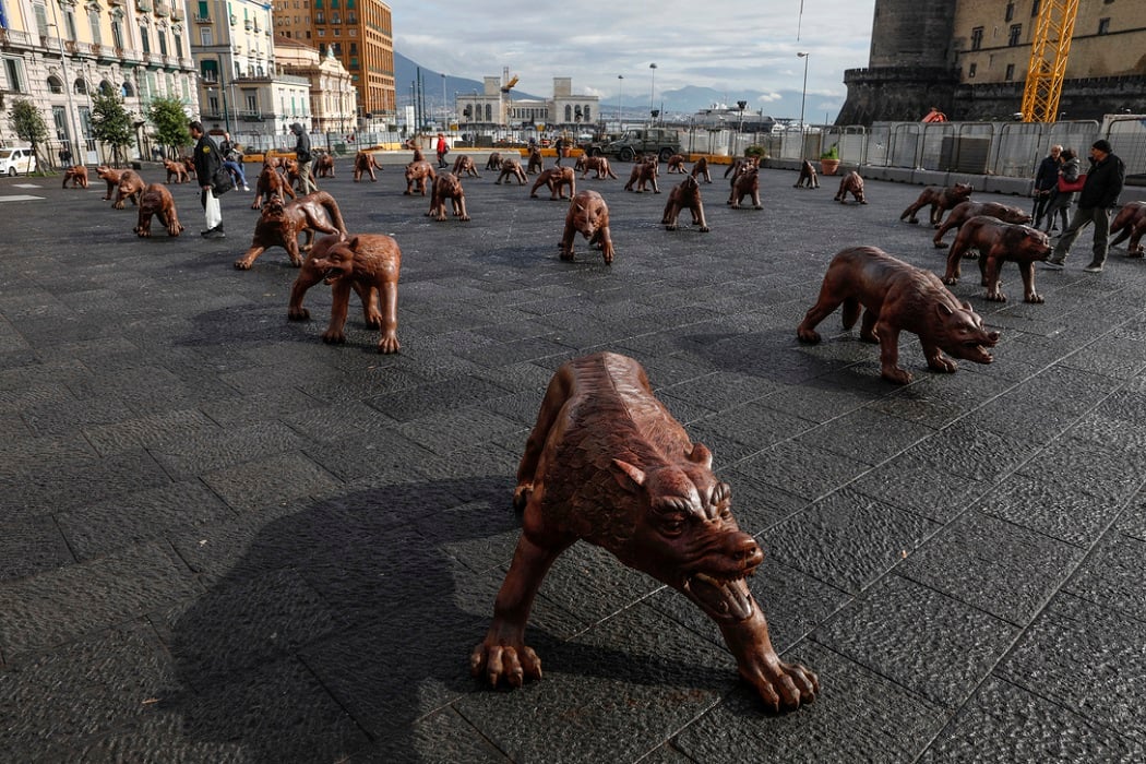 100 lupi e un guerriero armato invadono Piazza del Municipio a Napoli. Un progetto, tra gli ultimi atti del precedente assessorato alla cultura del Comune di Napoli, che porta il blasonato artista cinese in città