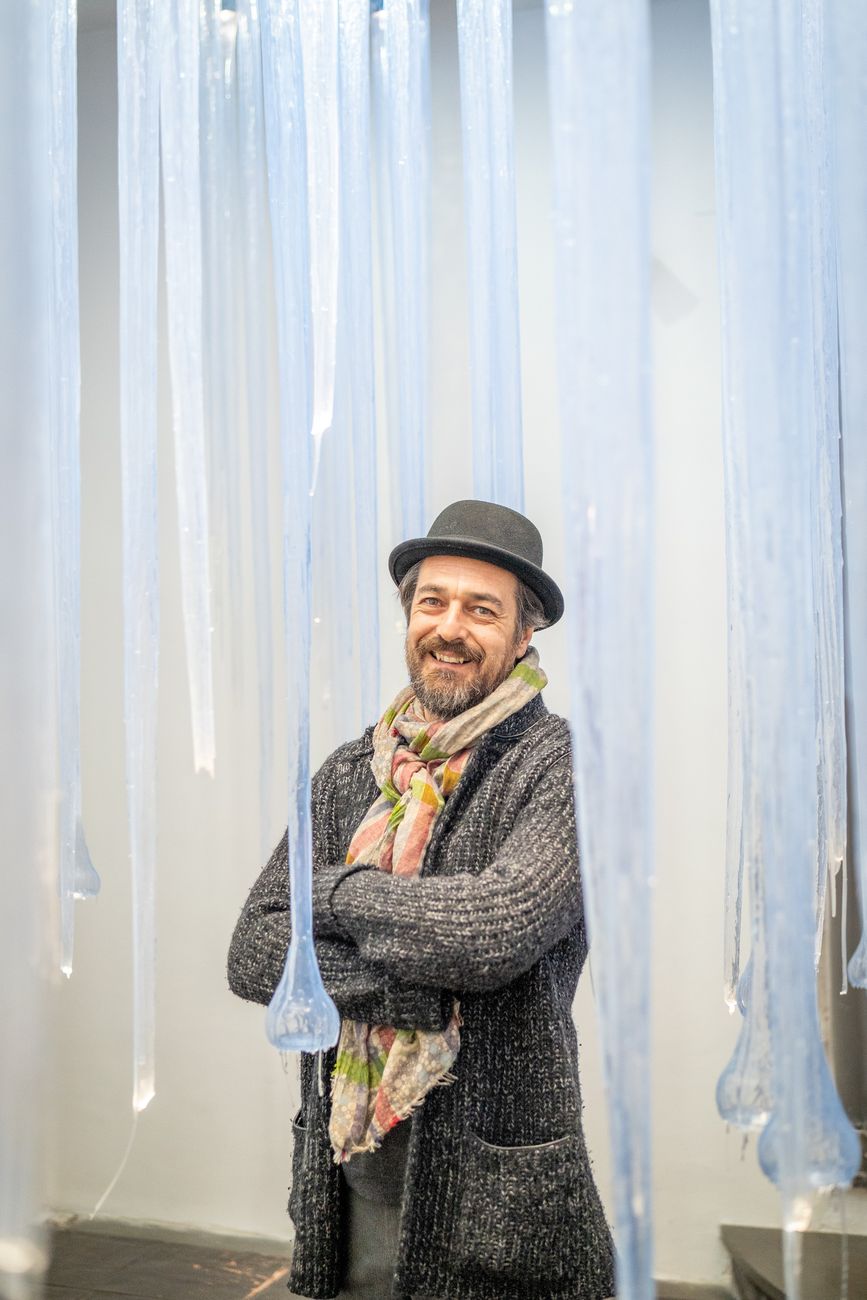 Dopo aver adoperato il silicone a consistenza tixotropica e dunque dopo aver prodotto opere dall’andamento gestuale per assecondare la naturale fluidità del materiale, Alessandro Ciffo (Biella, 1968) spinge la sua ricerca in un territorio più etereo: parte dalla lezione classica di Murano, ma la trasforma spostando l’asse dal vetro a un nuovo composto siliconico prodotto in Giappone (un bicomponente privo di solventi), la cui trasparenza non solo permette all’artista una maggiore cristallificazione e consistenza, ma anche un gioco d’ombre che crea un dialogo con gli spazi, con le architetture.