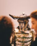 Ma c’è chi quei subway drawing ha iniziato a fotografarli, per poi staccarli dai muri o raccoglierli da terra, quando non riusciva a coinvolgere gli stessi operai per strapparli prima di sovrapporci nuove pubblicità. Stiamo parlando del pattinatore volante, dell’uomo che dipingeva sulla neve, del funambolo irriverente col pallino del fuoco. Ovvero Paolo Buggiani. Il primo a intuire il fenomeno sociale della Street Art. “I graffiti mi interessano come forma rivoluzionaria di espressione”. Ed è proprio da questo prezioso nucleo d’opere recuperato che nasce la mostra in corso all’Exma, dopo essere passata per il Museo Medici Riccardi a Firenze. Sono quindici le opere originali di Haring accostate alle trenta dello stesso Buggiani, tra fotografie che documentano performance e installazioni nella Grande Mela, alcune delle quali ritoccate per una resa tridimensionale. Ma non potevano mancare le macchine metamorfiche in lamiera assemblata. Quelle forgiate col fuoco dallo stesso artista. Coccodrilli, serpenti e altri rettili si accostano a sculture più imponenti che affondano le radici nel mito come Icaro e il Minotauro. “Il fuoco è l’elemento che forma la materia dell’Universo, con miliardi di stelle e pianeti, un fuoco che regala vita alla Terra. Cercare di diventarne amico per riuscire a plasmarlo dentro immagini simboliche, dipingere con lui nello spazio usandolo come un colore vivo, fa parte delle mie ricerche”.