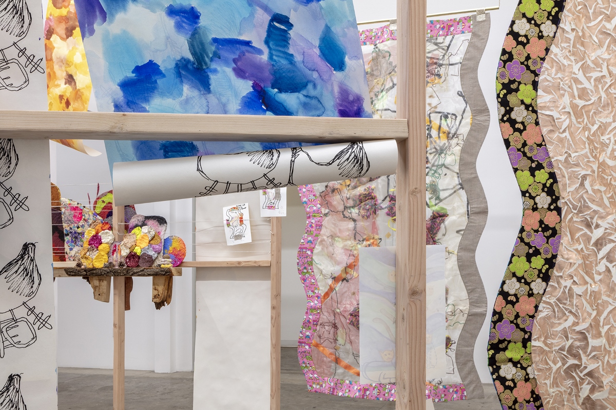 Arturo And The Vertical Sea, questo il titolo della seconda personale dell’artista italiana di adozione londinese Ludovica Gioscia (Roma, 1977) presso la Baert Gallery di Los Angeles, è il frutto di una particolare liaison: quella dell’artista con il suo gatto. “La mostra contiene nuovi lavori realizzati in collaborazione con il mio gatto Arturo”, ci racconta Gioscia. “Il titolo proviene da un sogno in cui Arturo si era moltiplicato e galleggiava felice in un mare intenso e verticale”. I lavori si articolano su tre grandi strutture di legno che si snodano per i due ambienti della galleria e sono, infatti, il prodotto dell’intimità tra l’artista e il suo gatto Arturo, dove l’affetto, la gioia e le fusa entrano a far parte dell’opera. Tutti questi elementi vengono così trasformati da Ludovica Gioscia – da sempre ispirata nel suo lavoro artistico da mondo vegetale e animale – in composizioni di ceramiche devozionali, che richiamano alla mente gli ex-voto, ed elaborati lavori in tessuto come vestaglie, carte da parati dipinte a mano e acquarelli. Ecco le immagini della mostra in corso fino al 20 febbraio 2021…