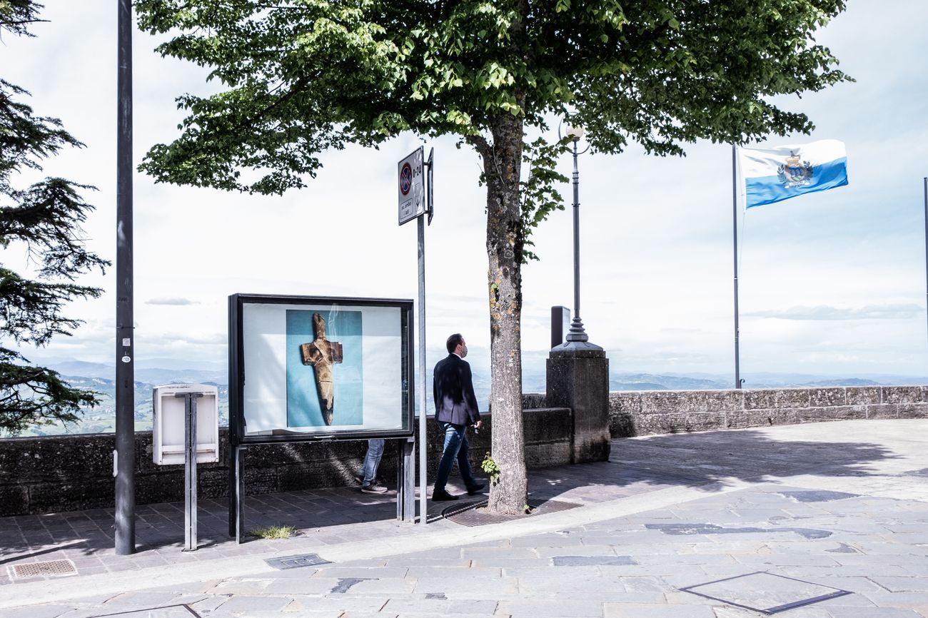 Annalisa Cannito è un’artista transdisciplinare, ricercatrice indipendente e attivista politica che lavora sui temi dell’immigrazione nell’Unione Europea, sui beni comuni, sulle memorie collettive e sull’arte negli spazi pubblici. Alla Biennale del Mediterraneo di San Marino espone nel Teatro Titano. L’opera si intitola Lifesaver e indaga l’impatto dell’eredità fascista e colonialista sulla società contemporanea. Un vecchio baule di legno su cui, all’esterno, è poggiato un salvagente di cemento dorato con piccole bandiere dell’UE al posto dei lacci. Il baule contiene le memorie di un passato buio sia per l’Italia che per i luoghi da essa colonizzati durante il fascismo: l’Etiopia, per esempio. È il baule dell’anti-colonialismo, dell’oro sottratto dal fascismo, dell’anti-fascismo e del viaggio. Più che viaggio un’odissea verso porti apparentemente sicuri: è il baule delle responsabilità dell’Europa verso i migranti.