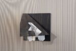 Il tono cupo e scuro domina gli spazi della galleria, evocando una nota malinconica costante, come se ci fosse una colonna sonora che accompagna tutto il percorso espositivo. Rupe diventa uno spazio di sintesi, tra vuoti e pieni, volumi e trasparenze, che racconta di materia e luoghi, creandone di nuovi.