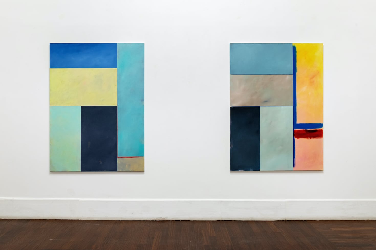 In questo memorabile apparecchio espositivo, ci sono inoltre, di tanto in tanto, dei lavori che l’artista chiama “dettagli”: si tratta di profilati in ferro zincato le cui estremità sono tagliate a quarantacinque gradi (un primo lavoro di questa serie è stato realizzato da Di Giugno in occasione del progetto Insieme, curato da Gianni Politi a Roma, sulle Mura Aureliane), quasi a indicare il lato di una cornice esplosa nello spazio e lavorato con un acrilico laccato, a tratti levigato per far trasparire il respiro morbido della pittura. La mostra è accompagnata dal testo critico di Davide Ferri.