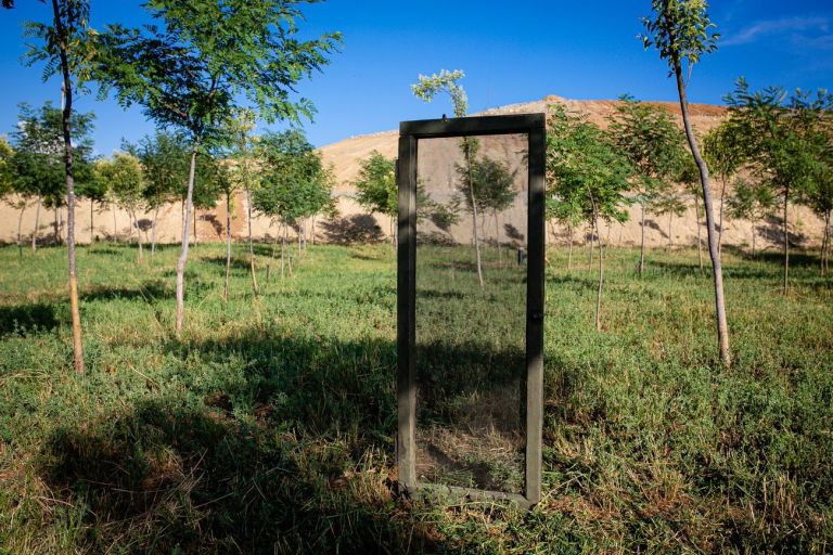 Fino a qualche anno fa passare da là significava chiudere i finestrini e girare lo sguardo, oggi quella collina in lontananza è un landfill che si sta riqualificando, un parco urbano con piantumazioni, fiori. E arte contemporanea. In quel paesaggio alieno c’è una finestra, che si nota ma non si impone tra i giovani alberi, sembra in legno e invece è in bronzo; sembra inquadrare un orizzonte e invece coglie uno dei tubi di sfiato della discarica; sembra poggiare su una terra conosciuta e invece è sospesa su qualcosa di ignoto, in decantazione, in metamorfosi; sembra un oggetto e invece è una visione. Niente è come sembra, e il fuori sincrono da sperdimento inquieta e interroga, tra acacie che si immaginano odorose, cicale erba fresca e camion, che a ritmo cadenzato scaricano, spostano, accumulano. È il rifiuto come reperto, realtà aumentata di senso, funzione, relazione, valore.