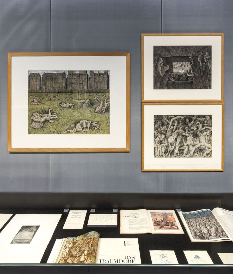 Di fronte a ogni lavoro, sia quelli pittorici, collocati al pianterreno del Podium, sia quelli grafici, documentari, oggettuali esposti al primo piano, si apre un mondo in cui fantasia, visionarietà, racconto si presentano ai nostri occhi attraverso una perfezione tecnica per nulla stucchevole. La mostra, allestita dallo studio 2×4 di New York, è l’ultima pensata e studiata da Germano Celant, scomparso nel 2020.