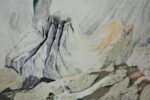 Da una parte ci sono gli scorci impervi dipinti in modo filigranato e con un cromatismo espressionista da Ringer, che paiono tratti da riprese aurorali effettuate coi droni. Dall’altra, le isole vulcaniche, gli specchi d’acqua e gli scogli aguzzi ritratti col carboncino da Mall, caratterizzati da un’insolita icasticità, insieme fotografica e scultorea.