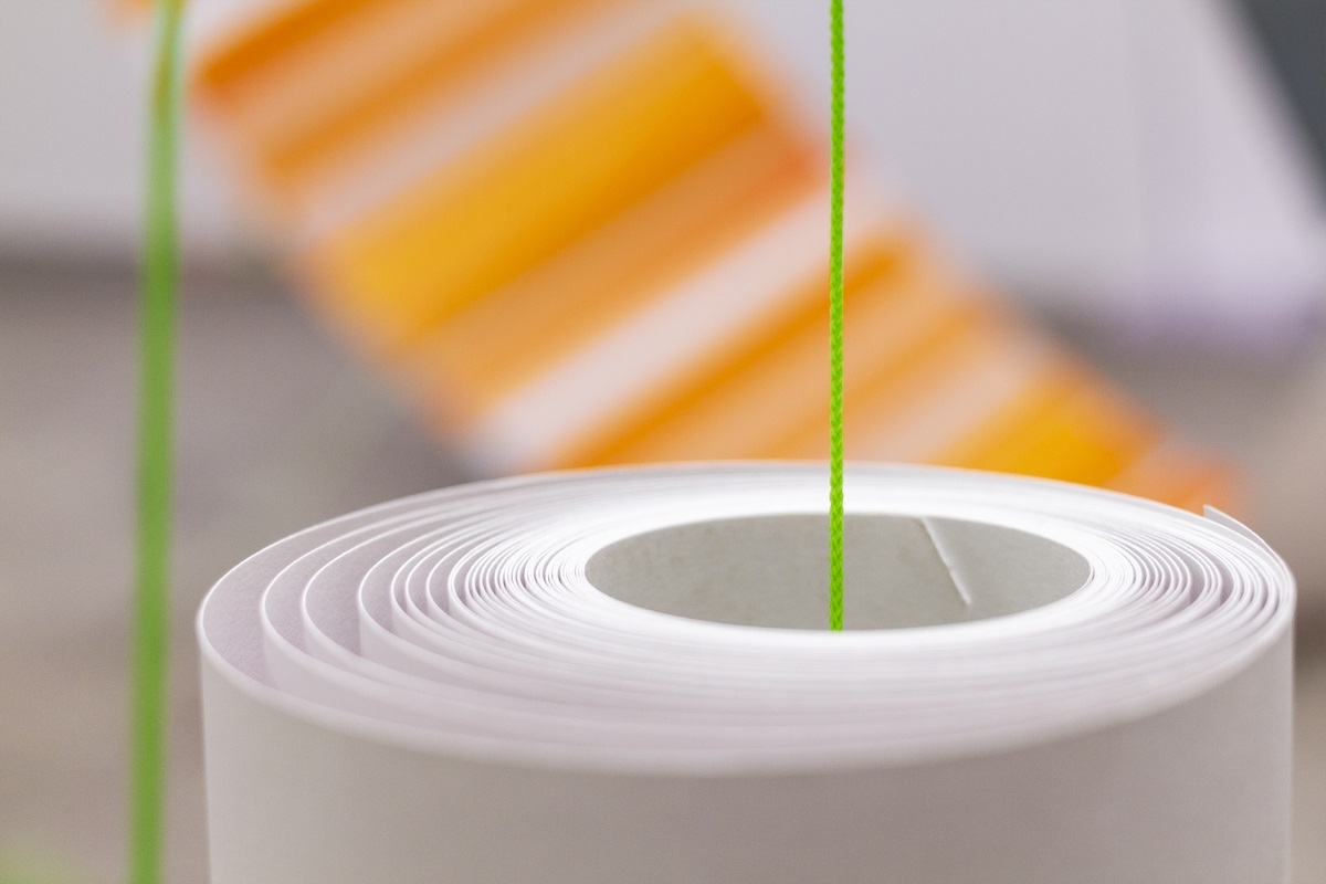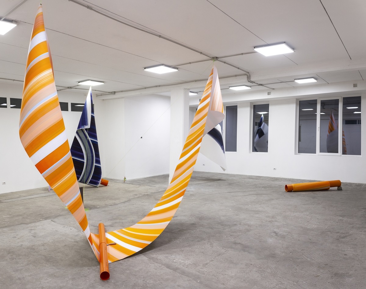 Tra labili equilibri e cangianti sfumature di colore, Spazio In Situ si trasforma, diventando non solo contenitore della mostra, ma vero e proprio contenuto. Un’armonia totalizzante lo avvolge: una parete, una colonna e una finestra interagiscono con l’opera e la pittura, diventandone parte integrante. “Con i lavori di Elisabeth la metafora della tavolozza diventa reale, e le metafore musicali diventano significative”, scrive Giuseppe Di Salvatore nel suo testo critico. “I suoi rulli diventano allora partiture, la sua meticolosa scelta dei colori richiama l’analisi dei sonagrammi di Èmile Leipp”. Ecco allora che il pubblico si muove nello spazio, in un insolito passo a due con le opere, seguendo i toni – ora alti, ora bassi ‒ delle sue leggere installazioni.