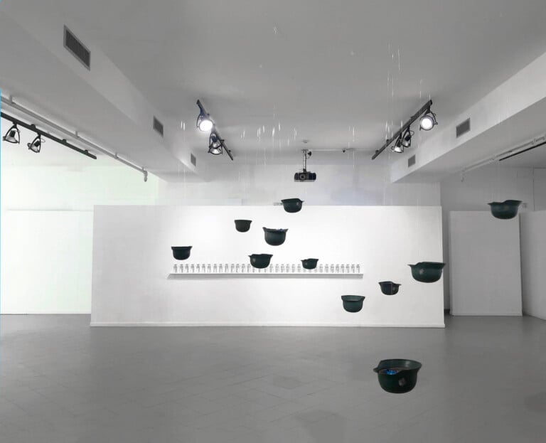 Fino al 14 settembre 2022, invece, il LOC, ospitato all’interno del Centro culturale polivalente “Antonio Librizzi” di Capo d’Orlando, presenta i lavori di una tra le più note esponenti Fluxus, Yoko Ono (Tokyo, 1933). Heal, a cura di Davide Di Maggio, raccoglie alcune delle opere più importanti dell’artista, provenienti dagli archivi di Fondazione Mudima e dalla collezione personale del curatore. Una tra tutti, We’ re all Water, installazione partecipativa presentata per la prima volta alla Lisson Gallery di Londra nel 1967 (un anno dopo che Yoko Ono ebbe conosciuto l’iconico cantante dei Beatles e compagno di vita John Lennon): consiste in 118 bottiglie in vetro contenenti acqua e posate a terra, a cui se ne aggiungono altre sulle quali il visitatore è chiamato a scrivere il proprio nome, ampliando progressivamente la raccolta e dando vita a un lavoro “work in progress”. Lo statement che Yoko Ono scrisse nel ’67 a proposito di questa installazione, “you are water / I’m water / we’re all water in different containers / that’s why it’s so easy to meet / someday we ‘ll evaporate together / but even after the water ‘s gone / we’ll probably point out to the containers / and say – that’s me there, that one – / we’re container minders”, fa riferimento alla poetica Fluxus, incentrata sulla relazione tra gli esseri umani, sull’effimero e sul quotidiano che entra all’interno dell’opera d’arte. Al centro dello spazio sono esposti anche gli undici elmetti originali dell’esercito tedesco Wehrmacht contenenti frammenti di puzzles di “cielo azzurro” che compongono l’opera Pieces of Sky, oltre al video Yoko Ono -To see the skies, del 1991, realizzato da Studio Azzurro in occasione della grande mostra sull’artista giapponese organizzata nello stesso anno presso la Fondazione Mudima a Milano.
