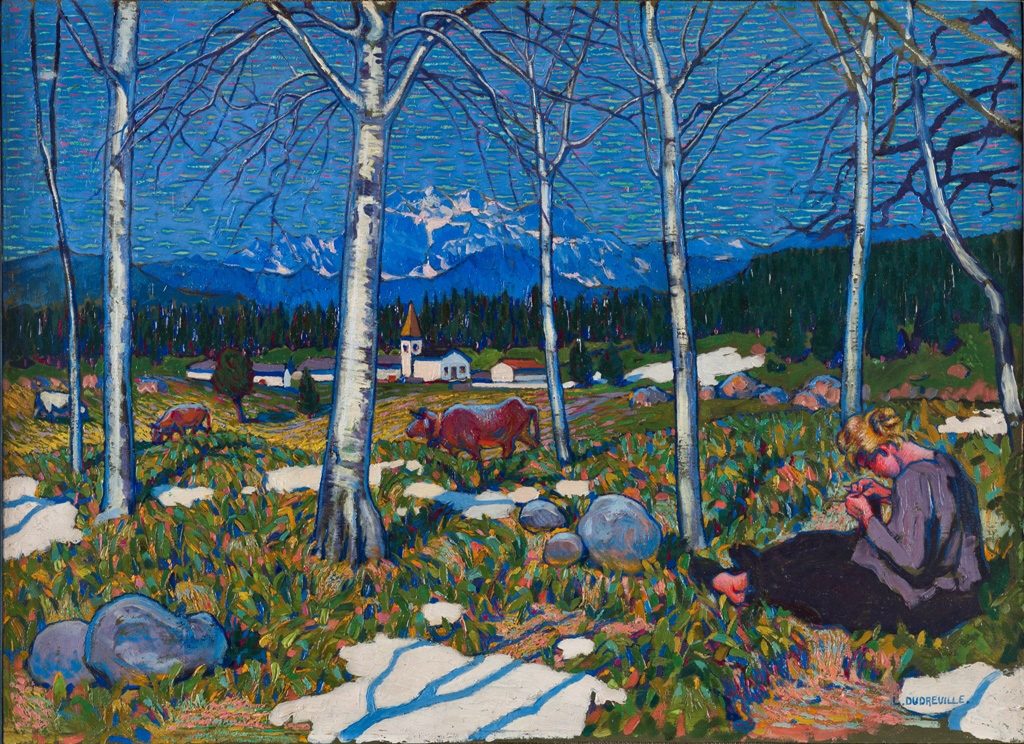 Gli esordi pittorici di Dudreville furono all’insegna della corrente di Segantini e Previati, auspici gli studi presso l’Accademia di Brera e un lungo soggiorno a Borgo Taro, sull’Appennino parmense, che gli permise di familiarizzare con i bucolici paesaggi montani cari ai due maestri, le cui teorie erano comunque state il punto di partenza per le avanguardie italiane degli anni successivi, e lo stesso Boccioni ne fu un esponente.