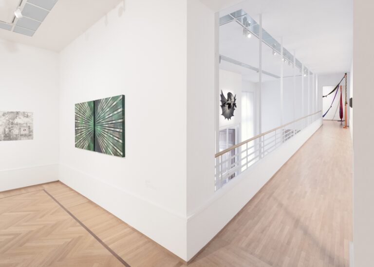 Molte le ombre oscure in questa mostra, dalle sfere frammentate di Roberto Pietrosanti (autore anche dell’opera Le 72 giornate di Artemisia del 2022, più riuscita) a This Is Not A Love Song (2010), il busto di Batman capovolto di Adrian Tranquilli, fino alla serie Black Pages (Monuments of the Memory), le immagini ricoperte di olio esausto e inquadrate da pesanti cornici di Canevari, come icone di un funerale aristocratico. Nel percorso espositivo, ben orchestrato da Tolve, le opere si susseguono con un ritmo cadenzato, che alterna immagini più esplicite come i grandi collage di Marina Paris con momenti più concettuali e poetici, tra i quali spiccano Medardo Rosso. Bambino alle cucine economiche (1892), un’evocativa installazione del 2023 di Andrea Aquilanti, e Allegro non troppo (2017), raffinata elegia dello scarto di Bruna Esposito. Una panoramica puntuale, costruita per exempla e dedicata a una generazione di artisti frenata ai suoi esordi da circostanze non favorevoli, ma oggi ancora attiva e quanto mai meritevole di essere presentata in un contesto museale.