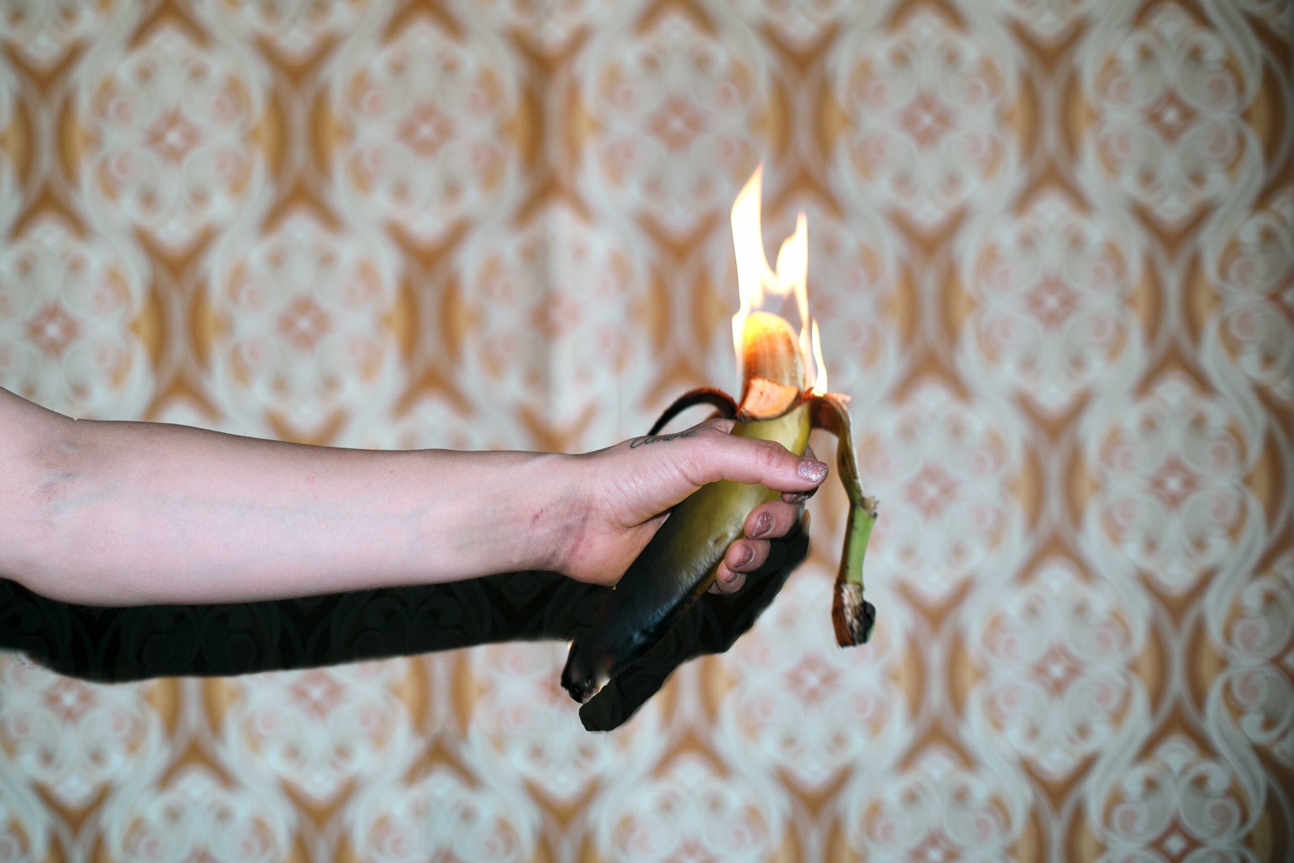 Gli oggetti presentati nella dimensione digitale inducono a interrogarsi su quanto sia effettivamente successo all’interno dell’albergo, nonostante le fotografie lascino intendere un possibile scenario. Mendoza ritrae nei suoi scatti tre modelle di fama internazionale, i cui corpi creano forme allusive a una sagoma già nota, nel solco di una pareidolia che spinge a immedesimarsi con una storia che non si conosce.