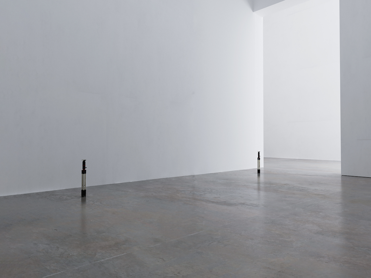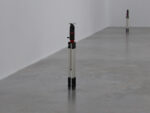 Ho utilizzato supporti fotografici in sostituzione di opere potenziali, ponendo l’attenzione sullo spazio e sull’anticipazione della scultura, piuttosto che sulla scultura stessa. Questi stativi metallici, richiusi su loro stessi, sono degli strumenti per definire un “set”, e agiscono come dei marcatori di posizione all’ interno di una scena. Rappresentano il potenziale per esibire o sostituire qualcosa a tal punto che anche la definizione di “mostra” in questo progetto, viene messa in discussione, per ottenere un layout aperto.
