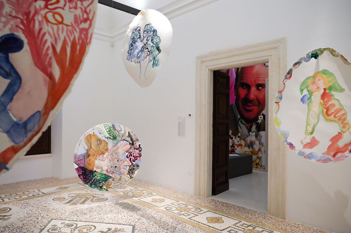 Nati tutti nell’ultimo trentennio del secolo scorso, gli artisti sono stati invitati ad esplorare e ad indagare gli aspetti più oscuri del presente, tra onirismo e trasformazioni, metamorfosi e ibridazioni. Si va dalle sculture biomorfe di Giulia Cenci, appartenenti allo stesso filone di quelle esposte alla 59. Esposizione Internazionale d’Arte di Venezia, alla metafisica in rebus dei dipinti di Valerio Nicolai. Cui si accostano quelli narrativi e psicologici di Guglielmo Castelli. Le impattanti sculture provocatorie di Caterina di Nicola, sulla riconfigurazione del manichino, anticipano le riflessioni sul mondo acquatico, tra miti e riletture, attraverso le opere di Bea Bonafini e Agnes Questionmark. Le volatili e circolari installazioni astronomiche di Alice Visentin, seguono la stanza installativa di Numero Cromatico, nella quale l’estetica del pixel e la vocazione per l’intelligenza artificiale si traducono in tendaggi sui quali appaiono curiosi pittogrammi antropomorfi di origine rupestre.