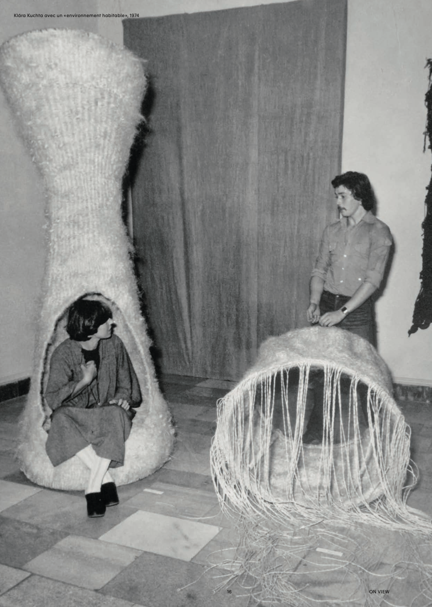 Klára Kuchta (Rozsnyó, 1941) è un’artista di origine ungherese naturalizzata svizzera, la cui carriera si è svolta attraverso la sperimentazione di diversi media, dall’arte tessile alla performance, dalla fotografia all’installazione. Le sue grandi sagome dei primi anni Settanta, intessute utilizzando il sisal, una fibra spessa e grezza, acquistano una forte connotazione tridimensionale e scultorea, a cui si contrappone la levità ed evanescenza delle tessiture per le quali scelse di utilizzare capelli umani. Nel decennio successivo questa attenzione alle capigliature prende una piega più concettuale e documentaria: i suoi Tableaux statistiques, ad esempio, illustrano i risultati di indagini sociologiche sulle pratiche di cura dei capelli in Europa. Nella sua installazione Blond vénitien II (1978) sono inseriti accessori utilizzati dai parrucchieri, oltre a un video e cartoline che si riferiscono a Venezia, città da cui deriva il nome del particolare colore biondo evocato dal titolo.