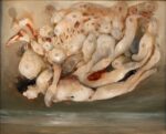 Pandemonio anima gli spazi dei Musei di San Salvarore in Lauro con oltresessanta opere,quasi tutte inedite, in cui l’artista modenese restituisce un ritratto dell’interiorità umana utilizzando il linguaggio delle paure e dei tormenti, creando composizioni fantastiche e scenari inquietanti. Il percorso espositivo si anima di creature crude e angoscianti che prendono forma tra contrasti netti e pennellate delicate. “Ogni tavola, carica di enigmatici piani narrativi, temporali e musicali (questi ultimi dai ritmi ossessivi della visual music praticata dall’artista), è abitata da un universo in eccesso mescolando aspetti classicheggianti a creature oniriche dalle forme bizzarre colte nella loro espiazione, sull’orlo del baratro, il lato mostruoso, le angosce e le inquietudini del nostro tempo”, spiega il curatore Cesare Biasini Selvaggi. “E tuttavia, sullo sfondo di ogni composizione balena il lampo della possibilità visionaria di redenzione per l’umanità, quindi di fede nella salvezza”. Il percorso è completato dal video Pandemonio, realizzato dall’artista con musiche autografe e l’ausilio dell’intelligenza artificiale, in cui i sottotitoli guidano il pubblico nell’interpretazione delle immagini, spingendolo a riflettere sul proprio destino.