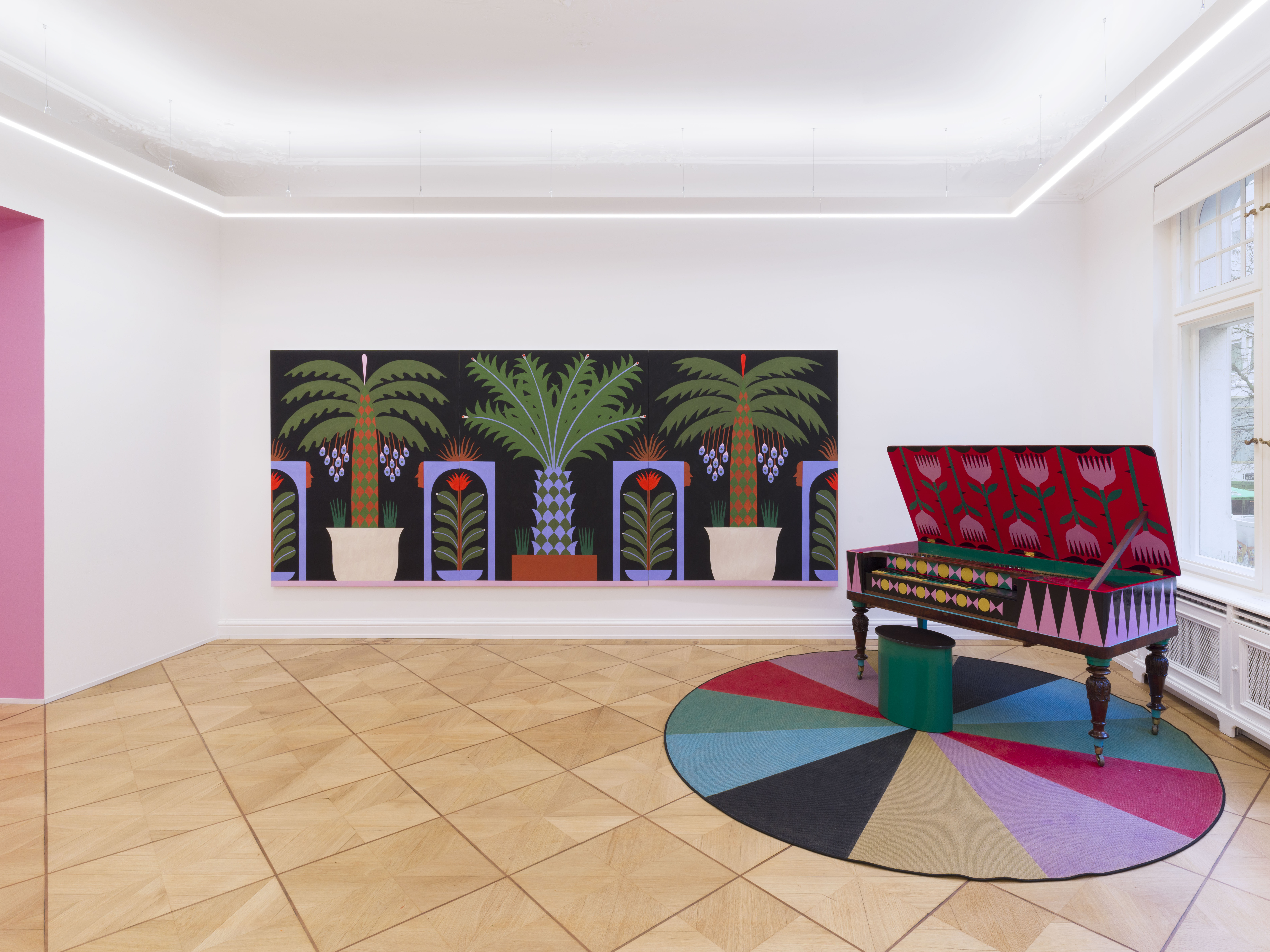 “Agostino Iacurci ha creato una sua cifra personalissima con cui rappresenta la realtà e in modo particolare il paesaggio, attraverso un linguaggio dai molteplici livelli interpretativi, uno più immediato che raggiunge direttamente lo spettatore, altri più adombrati che si disvelano solo a uno sguardo attento e analitico”, spiega Marcello Smarrelli, direttore artistico della Fondazione Ermanno Casoli. Nella sua pratica, Iacurci fa propri diversi linguaggi delle arti visive: pittura, scultura, luce e suono. Un mix eterogeneo che prende forma in installazioni immersive che dialogano con i luoghi, intrecciando colori, segni, storie e riferimenti letterari. “Oltre a questo stile fortemente espressivo, in cui convivono l’estetica futurista, l’esperienza eclettica del gruppo Memphis e gli sviluppi più attuali delle pratiche artistiche contemporanee”, continua Smarrelli, “un elemento fondamentale della pratica di Iacurci è l’attitudine alla relazione che lo rende felicemente incline a condividere il processo creativo con gruppi eterogenei di persone”.