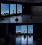 Il ghigno di un lupo impagliato che indossa stivaletti rossi in stile Spiderman, simbolo della “caduta dei miti”, campeggia nel giardino antistante il teatro. Una scelta discutibile. Risulta disturbante anche Il complotto di Tirana (2001-2021), l’installazione ubicata in un container e realizzata con foto (alcune sconce) e lightbox. L’opera fa riferimento alla beffa della prima Biennale di Tirana del 2001. In quell’occasione, ignoti riuscirono a carpire la fiducia di Giancarlo Politi – allora direttore artistico della Biennale – portando in esposizione le opere di quattro falsi artisti. Nella Sala Giuseppina del Kursaal, spiccano i tre led wall del Disney Metallurgico (2021): immagini in bianco e nero di paesaggi industriali dismessi, risalenti all’epoca del piano d’industrializzazione attuato in Albania dal dittatore Enver Hoxha, sono attraversate da scintillanti montagne russe fuxia. Un riferimento ai neon di Mario Merz, a simboleggiare l’evasione turbocapitalista nella dimensione dell’effimero. Nel fulgore della Sala Cielo, poi, si staglia U.F.O. Unidentified False Object Nr.1 (Bunker) (2024), installazione in resina che riproduce, in scala 1:1, uno dei migliaia di bunker voluti da Hoxha in Albania, riconvertito dalla popolazione locale in una cappella ortodossa. Isufi la riproduce richiamando gli stilemi dell’arte bizantina. E la circonda di ventotto Bon bon di cemento, sculture in resina (alcune delle quali cinetiche) sparse per la sala, che richiamano le minuscole costruzioni di cemento. Ostacoli, ancora oggi, del passaggio nelle vie di Tirana.