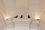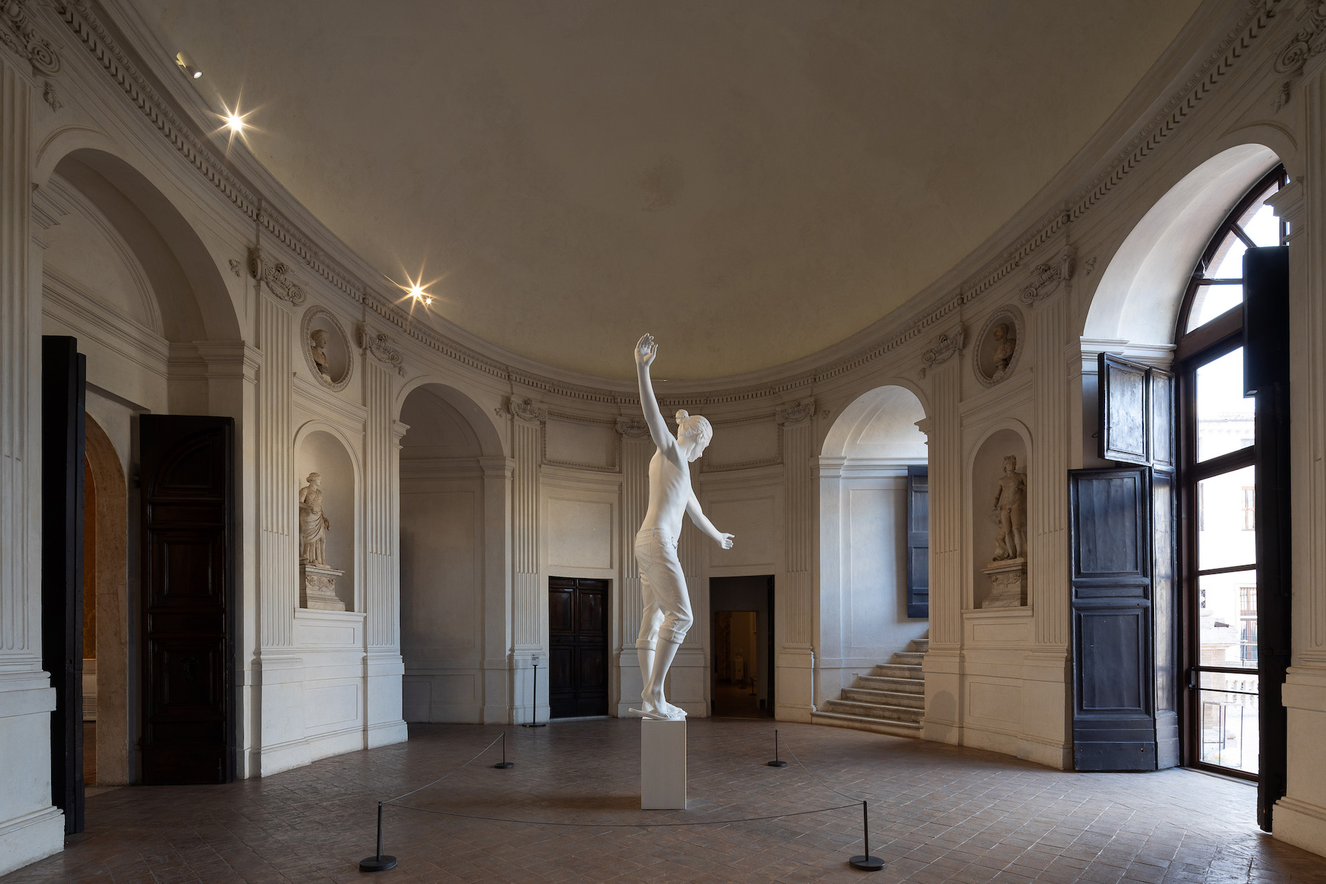 Al piano nobile, i piccioni di Maurizio Cattelan, appollaiati sulle lesene dell’atrio Bernini, suggeriscono un senso straniante di richiamo agli “Uccelli” di Hitchcock. Mentre nella Sala Ovale, il grande arcangelo in fibra di vetro di Charles Rey è uno strappo del cielo di carta, poiché non ha ali né aura sacrale, essendo, in realtà, il ritratto di un serfista. Nella Sala Marmi poi una curiosità allestitiva: 61 opere, in una bulimia di immagini, ricreano l’ambiente di una quadreria seicentesca.