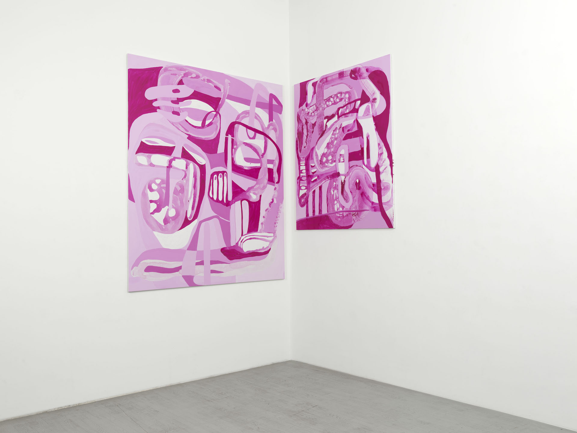 I lavori, tutti rigorosamente astratti, mettono in risalto la coerenza della poetica di Jana Schröder, allieva di Albert Oehlen, che lavora sul concetto di scarabocchio, elevandolo a forma pura da cui partire per una ricerca sulle potenzialità del colore a trecentosessanta gradi.