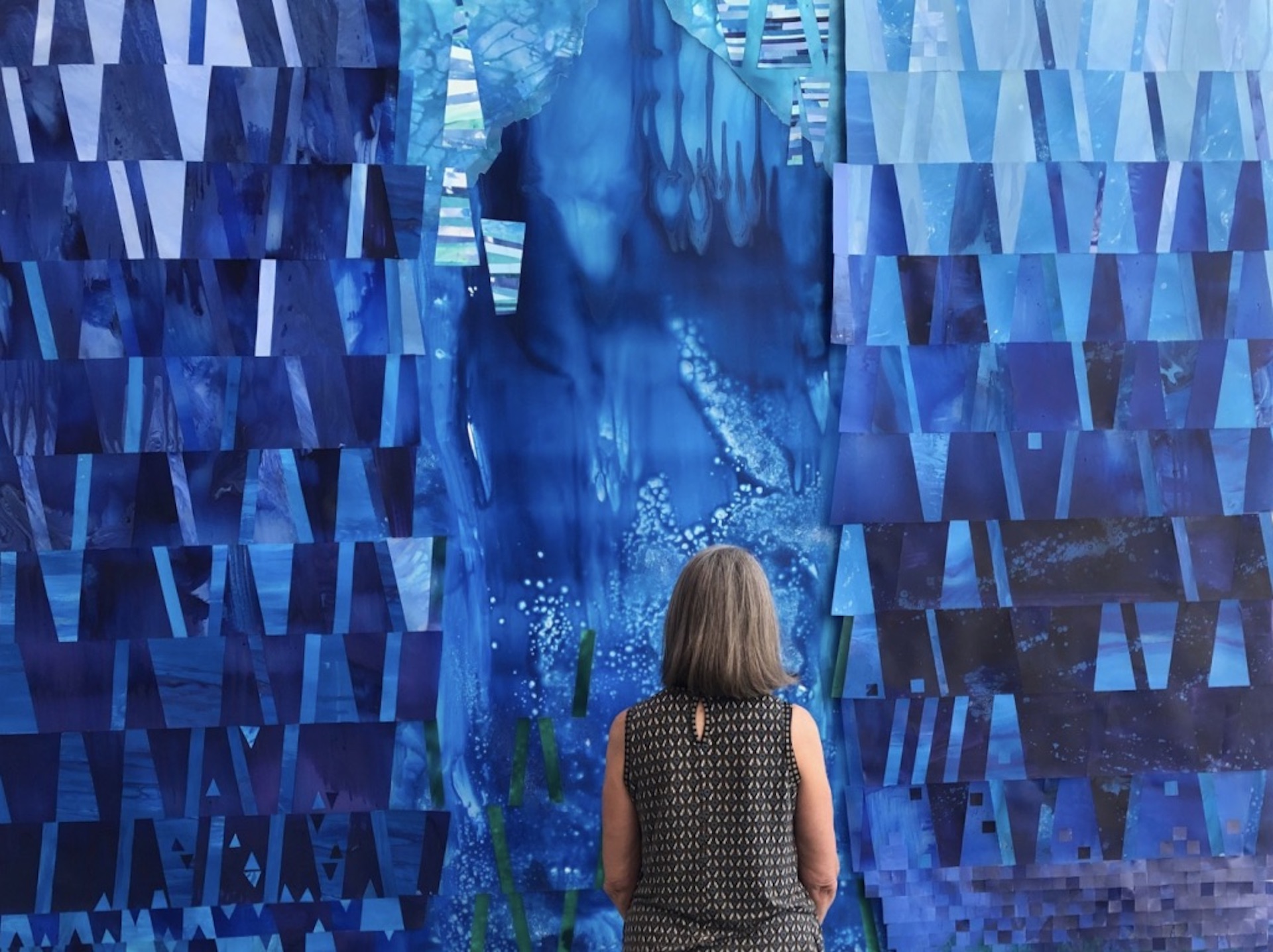 Riflessioni paesaggistiche e sociali, mutazioni di cromie e significati. È iniziato in Italia, nel 2017, il tour che ha ispirato l’artista americana Barbara Crawford (Lexington, Virginia) per la genesi delle sue opere ora allestite nella mostra Transcending Blue, alla Fondazione Nicola Del Roscio. Si tratta di due installazioni che omaggiano il maestro, amico e concittadino Cy Twombly (Lexington, 1928 – Roma, 2011), che Barbara e suo marito conoscevano sin dagli anni universitari. Proprio loro collaborarono con Twombly nella produzione del murale The Ceiling al Louvre. Oggetto, fino a pochi anni fa, di una delicata disputa legata alla revisione della sala che lo accoglie. La sfida dell’artista in questa mostra è stata quella di ricrearne l’esatta tonalità di blu, il “Twomblue”.
