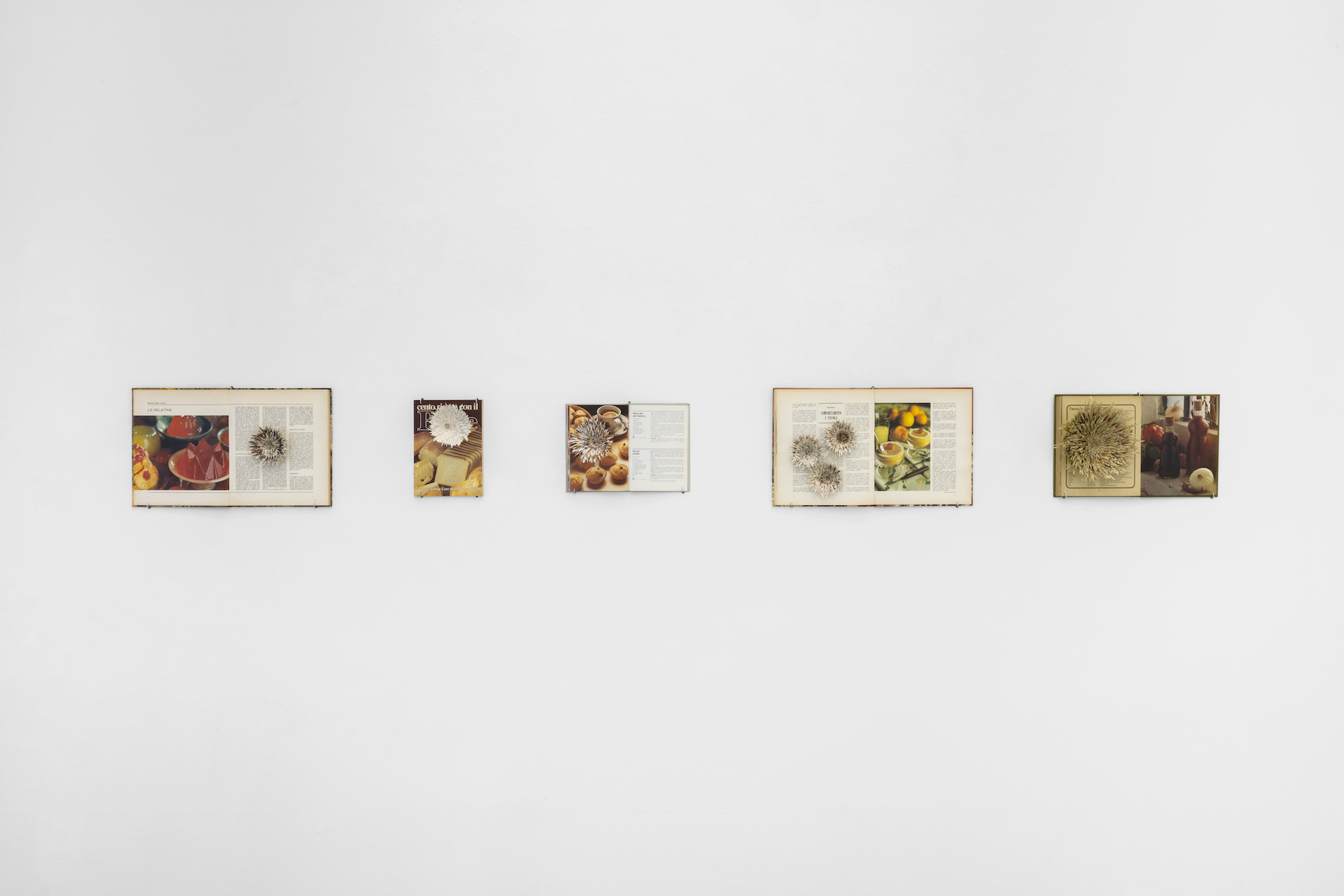 La mostra, in cui sono esposti libri d’artista, piccole sculture di ceramica, di bronzo, disegni e collage, ruota attorno a un progetto dedicato al cibo. Questo è trattato con l’intelligenza e l’ironia che connotano il lavoro dell’artista, nata nel 1986 e formatasi tra le lezioni di Alberto Garutti all’Accademia di Brera e lo IAV di Venezia. Così vale per l’installazione fatta di scatole di fiammiferi o per i due libri dedicati alla cucina scavati da Vestrucci nei momenti di cosiddetta pausa.