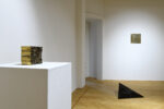 Nella prima sala si trova anche Work Installazione, 1965-1968, scultura di sezione quadrata la cui trama è definita da una griglia di 289 brass pipes, piccoli tubi in ottone profilati. Materiale che l’artista iniziò a usare durante il suo soggiorno a Tokyo negli anni Sessanta. “Le sculture di Miyawaki si presentano come piccole architetture, dove l’invisibile abita e attraversa senza sosta il nuovo materiale scelto dall’artista”, scrivono i curatori. L’impressione è di uno schema aureo, le cui parti compongono un grande insieme significante, una sorta di alveare contemporaneo, di cui le rifrazioni luminose – tipiche dell’ottone – plasmano di continuo la fisionomia indefinita. La collocazione delle opere su plinti bianchi consente di ammirarle da tutti i punti di vista, attraversandone con lo sguardo i perimetri interni e le superfici riflettenti esterne. Entrando nello Studio Gariboldi si ha l’impressione di attraversare un luogo sospeso, aureo, celato, difficile da cogliere all’istante. La mostra diventa così un momento di silenzio, in un mondo che avanza veloce. Lo spazio espositivo si configura come un luogo da attraversare. Invito a una flâneurie contemporanea in cui il pubblico cerca di decifrare il significato concettuale dell’intimità espressa dall’artista. La galleria diventa un ambiente in fieri, da costruire nel momento in cui lo si attraversa, movimento indagatore attraverso cui si svela il gioco di luci, rifrazioni, pieni e vuoti.