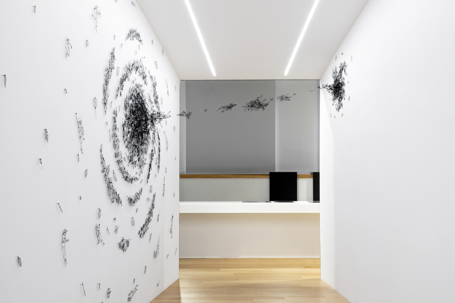 Le opere dell’artista piemontese, dunque, si fondono con il design della nuova creazione di Gaggenau offrendo un’esperienza immersiva che in invita a riflettere sulle connessioni tra uomo, tecnologia e l’ambiente che vive. Le installazioni sono realizzate con la tecnica di disegno 3D aerospaziale che Gnata utilizza per rielaborare celebri capolavori del passato, come Melencolia I di Dürer del 1514, La Danza di Matisse del 1910 e Le Muse inquietanti di Giorgio de Chirico del 1917. “Il bagaglio del passato si fonde con spunti derivanti da studi recenti, tra cui l’idea di responso-abilità di Donna Haraway e il concetto di resilienza organica di Anna Tsing. Il risultato è un’installazione artistica che si espande e si insinua in ogni angolo dello spazio, dialogando con gli elementi distintivi del design del brand tedesco, espressione di un’eccellenza tecnica e di un raffinato ingegno umano. In questo continuo scambio tra opera e ambiente, ‘Cosmogonie’ si trasforma in una potente metafora visiva della resilienza, intesa non solo come principio fondante della nostra esistenza, ma come chiave dell’ordine stesso che regge il mondo”, continua Frassà.