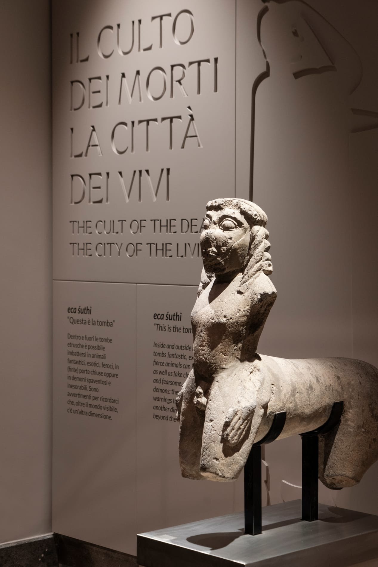 Dotdotdot firma intanto il nuovo allestimento multimediale dell’Ipogeo del Museo. Concepito come una discesa nella necropoli, il progetto (aperto il 27 settembre per le Giornate Europee del Patrimonio e inaugurato il 13 ottobre) trasforma lo spazio sotterraneo della Villa in un’esperienza narrativa immersiva incentrata sul culto dei morti come chiave per comprendere la città dei vivi. L’allestimento – rinnovato grazie al progetto Etru senza barriere: etruschi 4.0 per un Museo Nazionale Etrusco pienamente inclusivo e accessibile: cognitivamente, fisicamente e sensorialmente finanziato dal PNRR – è improntato all’accessibilità, grazie a una pluralità di linguaggi che bilanciano immersione, informazione e scoperta: l’intero percorso è pensato per essere fruibile da un pubblico ampio e diversificato: da persone con difficoltà fisiche e cognitive, ai più giovani fino al pubblico esperto.