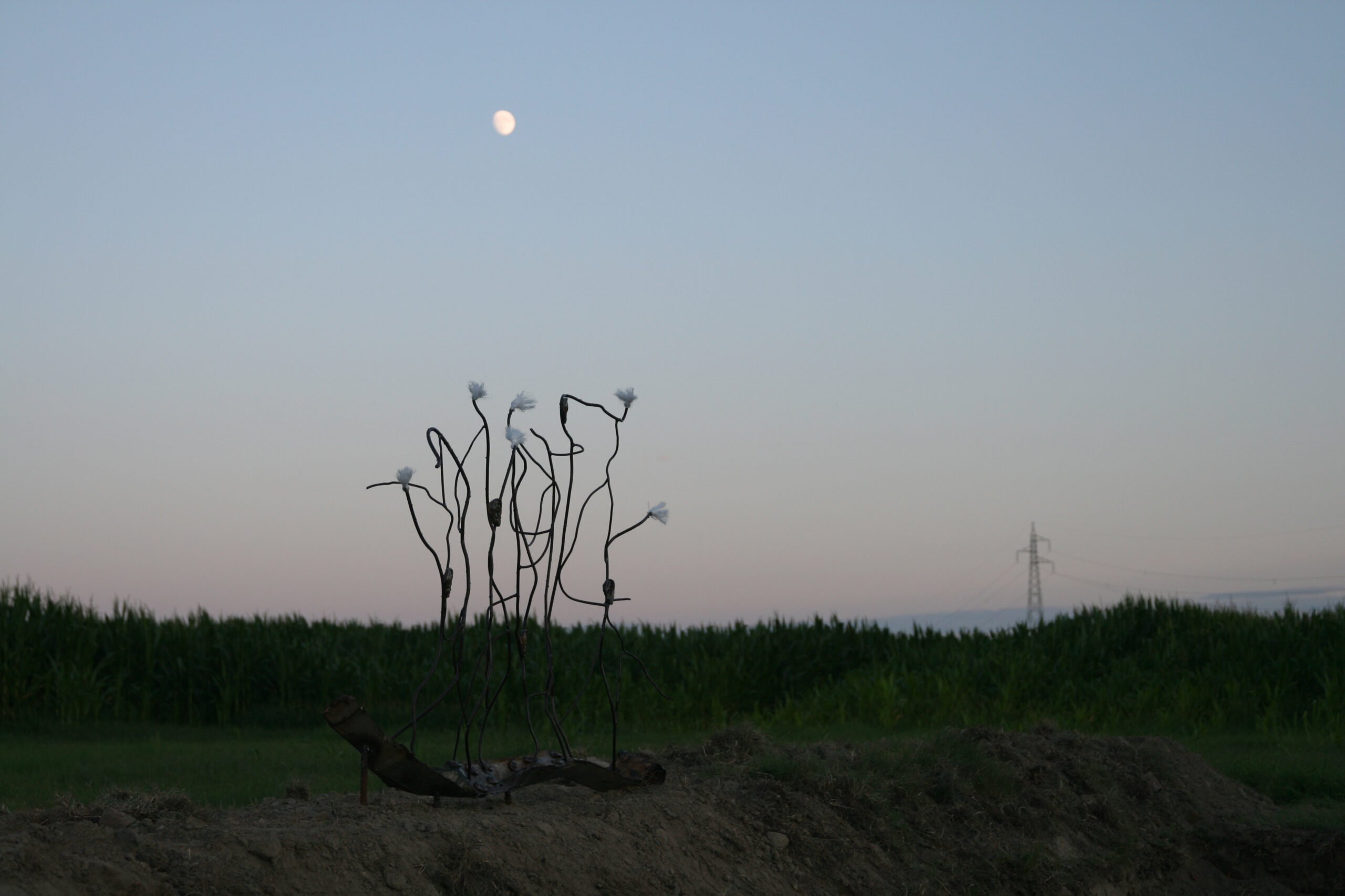 Il suo svolgimento rinvia anche al tuo interesse per il ruolo che possono avere i simboli. Una tua opera recente, “Che proveresti tu se ti fiorisse la terra sotto i piedi, all’improvviso?” lo mostra molto bene: penso in particolare al cancello che hai realizzato e posto all’ingresso del giardino che hai fatto per questa tua opera.