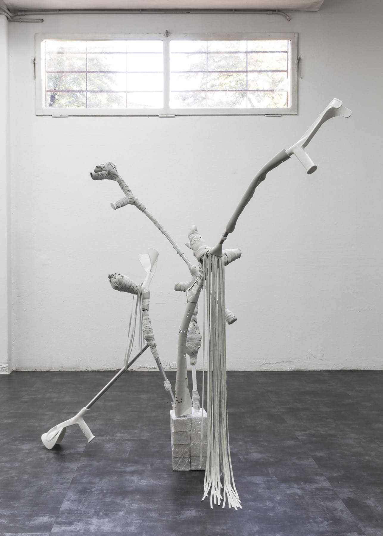 Dall’11 ottobre al 9 novembre dal Cortile del Tribunale nel Palazzo del Capitanio, si accede alla mostra Tomorrows. Folding, Flexing, Expanding, curata da Jessica Bianchera e Domenico Quaranta, inaugurata in occasione dei giorni di ArtVerona 2025. Nelle stanze al piano terra del palazzo storico, il progetto prende vita con un tema nuovo rispetto alle riflessioni dei due anni precedenti: attraverso un nuovo umanesimo, centralizza le variabili e le possibili metamorfosi che il corpo umano potrebbe subire in futuro. In mostra le opere selezionate disegnano un corpo ormai lontano dalla sua naturalità, è diventato un dispositivo politico e fantastico in cui biotecnologia e IA lo attraversano e modificano nel tempo.