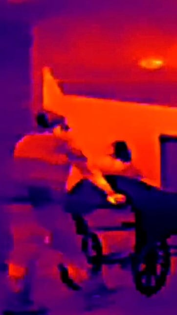 “L’idea era dunque quella di riprendere un corpo che si spegne, nel suo passaggio tra la vita e la morte, per restituire la percezione che il tramonto sia parte di noi, un processo in cui il calore del corpo umano lentamente si affievolisce fino a diventare un tutt’uno con lo spazio. È come un attenuarsi continuo: nel suo insieme, la vita tende all’astrazione. Siamo corpi che si spengono, e rappresentarci attraverso il calore significa forse accedere a una dimensione che non abbiamo mai realmente immaginato, dove le forme si dissolvono, diventando qualcosa di fluido, quasi gassoso“, continua. “Noi siamo “tramonto”: nel senso che il tramonto fa parte di noi, perché in qualche modo ci spegniamo un po’ ogni giorno. Da qui è nata l’idea di avvicinarsi ai centri residenziali per malati terminali, luoghi in cui l’accompagnamento al fine vita diventa una pratica di cura, un modo per prendersi carico del percorso finale che i pazienti vivono all’interno di queste strutture”.