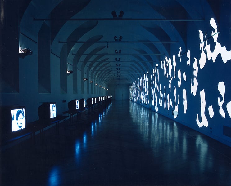 Sì, Luci Bianche nasce per il Refettorio del Palazzo delle Stelline, un luogo carico di memoria. Lì vivevano le bambine orfane di Milano, chiamate “le Stelline”. Ho lavorato sulle fotografie originali conservate negli archivi del Pio Albergo Trivulzio, trasformandole in un’unica immagine lunga 65 metri che occupava l’intera parete Nord. Sull’altro lato, dieci tavoli ospitavano venti monitor che trasmettevano i volti delle bambine, un flusso ininterrotto di presenze. Nello spazio buio si udivano le loro voci, registrate dal coro delle voci bianche del Teatro alla Scala di Milano, che pronunciavano nomi femminili emergenti dal silenzio dello spazio. Era come se la memoria stessa del luogo tornasse a vivere nella loro luce. Le immagini non rappresentavano, abitavano lo spazio. Luce e architettura, tempo e voce si saldavano in un unico corpo simbolico.