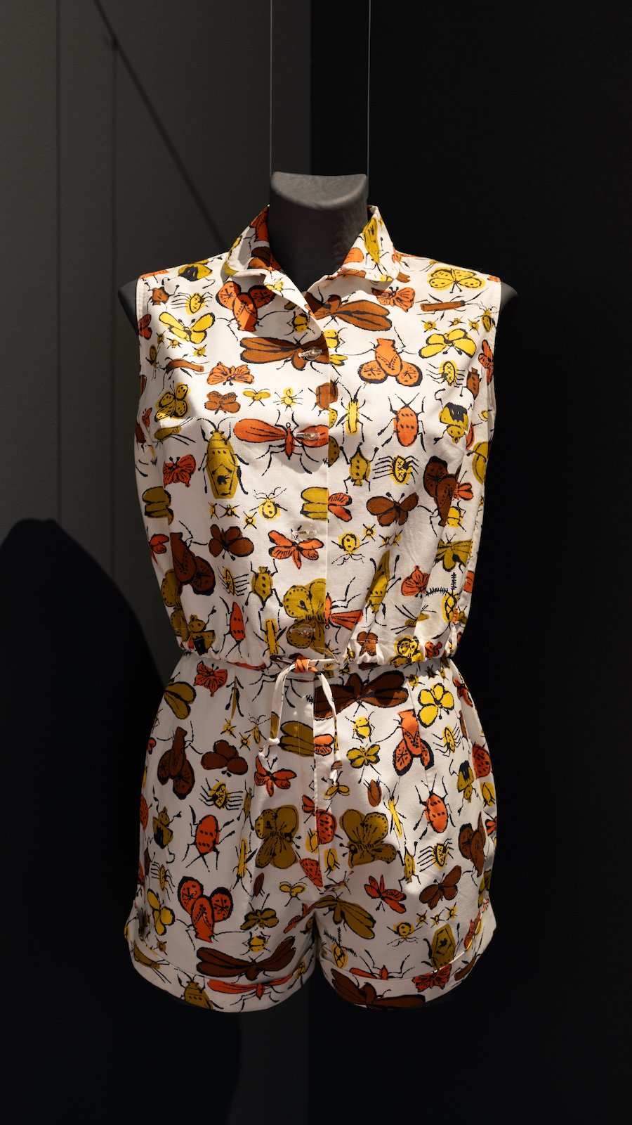 Nei tessuti disegnati in questo periodo e nei vestiti esposti – alcuni molto attuali e moderni – si colgono già soggetti e modalità seriali che saranno sviluppate negli anni Sessanta in opere che appartengono a pieno titolo alla Pop Art. “Prende spunto dal mondo della natura: le farfalle sono un suo soggetto preferito, ma anche i clown e i cavalli circensi, frutti, gatti, bottiglie, bottoni e animali da giardino, gelati che compaiono in modo seriale su tessuti, carta da regalo, biglietti per auguri, pannelli decorative per le vetrine dei negozio di lusso”, spiega Francesca Biagioli. Warhol, oltre che geniale artista, era anche un attento business man, pronto ad accontentare qualsiasi cliente pagante.