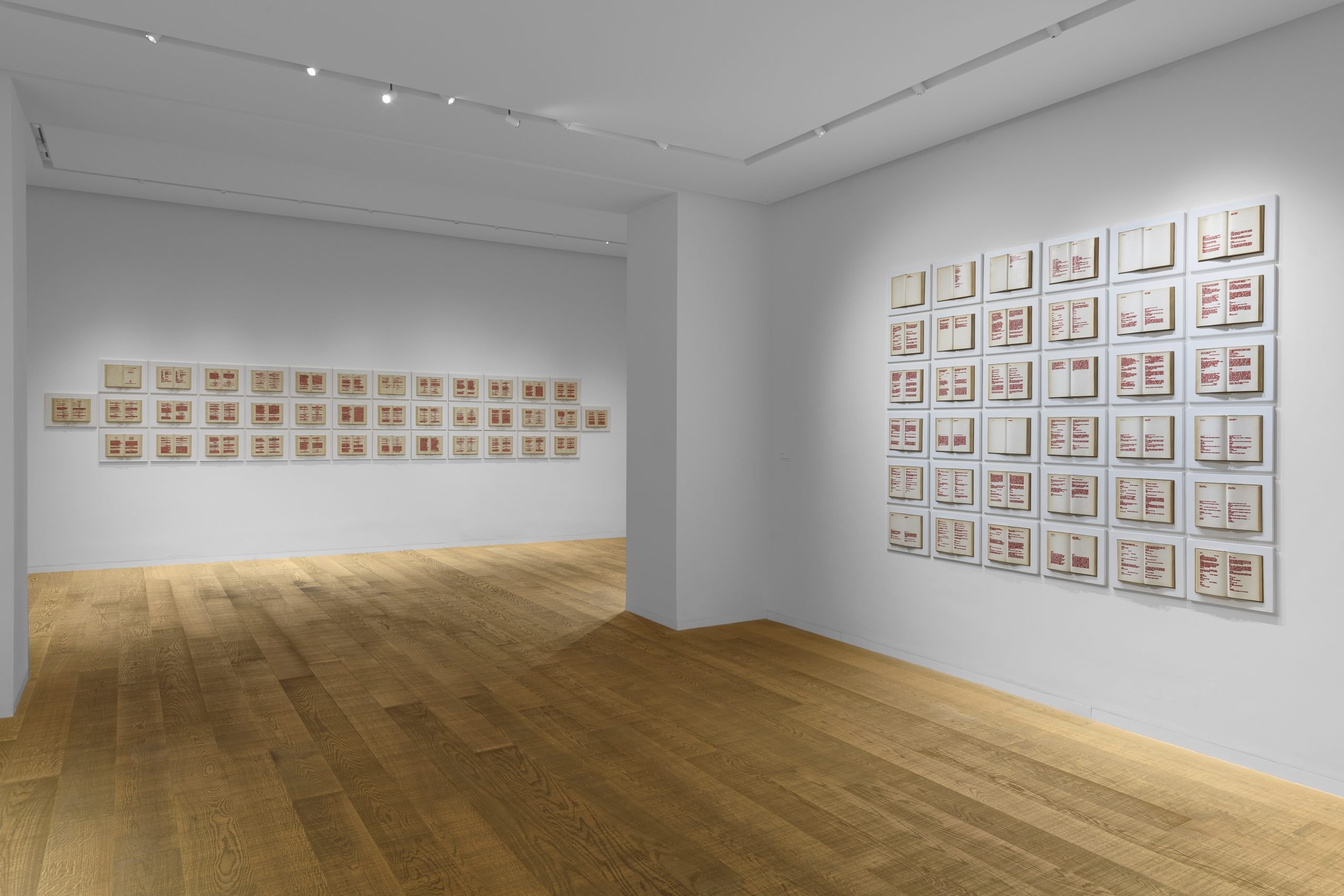 “Rinnegavo l’eccesso di concettuale (…) e usai il rosso perché secondo i concettuali chi usava il rosso era dannato”, spiega l’artista. Come sottolinea Marco Bazzini nel testo in catalogo della mostra, lo scrivere, secondo Roland Barthes, “significa procedere per rapture, cancellare nella sua lingua”. In effetti, il legame tra scrivere e cancellare in francese “è così stretto da essere incarnato nello stesso termine littérature”. Non a caso molte delle avanguardie storiche nascevano dalla commistione tra letteratura e arte, come il futurismo, il dadaismo e il surrealismo.