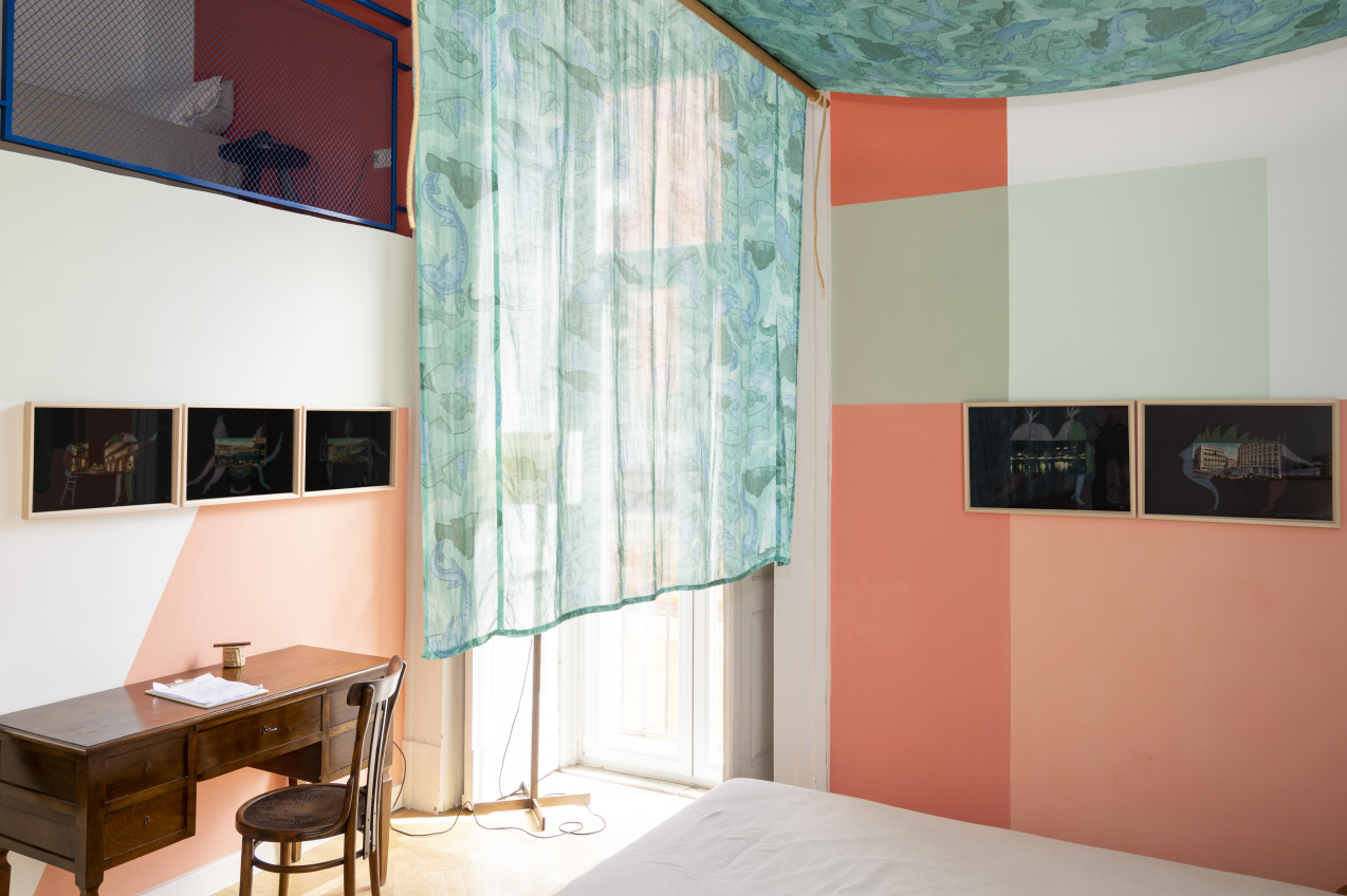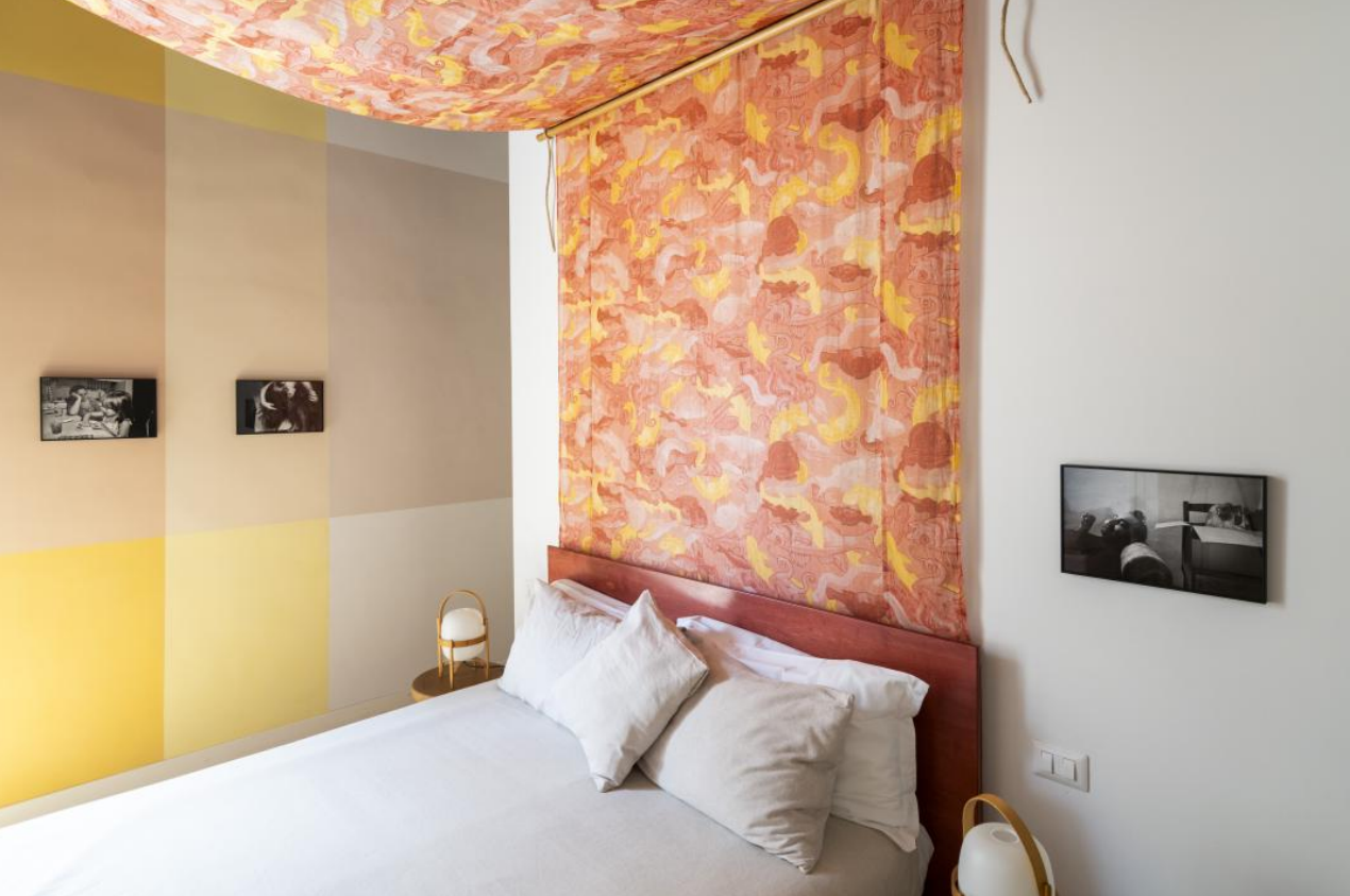 Con la macro-curatela di Nicola Ciancio, Look Closer 02 invita infatti nove curatori a interpretare con sette artisti la natura e vocazione dell’art hotel da lui stesso creato con Vincenzo Falcione: farsi accoglienza, stimolo e costruzione di una comunità internazionale di viaggiatori e creativi, resi protagonisti di una rete di scambio e osmosi tra le energie della città partenopea e del mondo, ponendo in dialogo il tessuto locale con gli ospiti dell’hotel. Che però divengono a loro volta “ospitanti” che aprono la propria camera e temporanea riservatezza per permettere la visione delle opere, fluidificando ruoli e apporti.