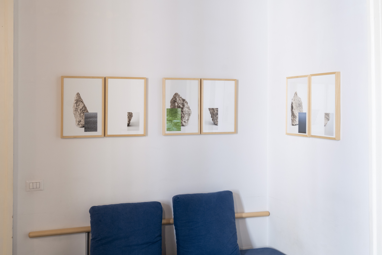 Disorienta dunque, in apparente tranquillizzazione di geometrie sentimentali, il quadrato magico di Libero De Cunzo, a cura di Raffaella Morra e Loredana Troise, nella stanza successiva. Nove tessere di visioni pulite, eredi di onirismi e lirismi di Luigi Ghirri, che accolgono la randomica soggettività del fruitore come parte integrante dell’opera. In svolgimento interattivo, gli scatti sono concepiti infatti per essere spostati e riallestiti dall’ospite della camera: l’autorialità lascia andare direttività e controllo per rimodulare i confini di integrità e intimità nel policentrismo di una creazione partecipata. L’immagine fotografica, e filmica, ci riaccoglie nella deluxe successiva, con Adriano Tenore curato da Francesca Blandino per Collezione Agovino. Ma stavolta la porta della camera diviene portale per l’oltre, il dubbio e confine irrompono al di là della stessa certezza realistica di quanto vediamo. In un tunnel di visioni animiche, le memorie fotografiche dell’autore sono il punto di partenza per flussi percettivi in dialogo con l’intelligenza artificiale, che rende mobili in video gli scatti iniziali. Pur se strettamente diretto dall’autore, l’attingere all‘inconscio collettivo visivo dell’AI, indagando la relazione tra naturale e artificiale, finisce per esplorare quella multigenerazionale e ubiqua tra anime, evocando una sovra-entità transpersonale, quasi affettivamente partecipe dell’individuale.
