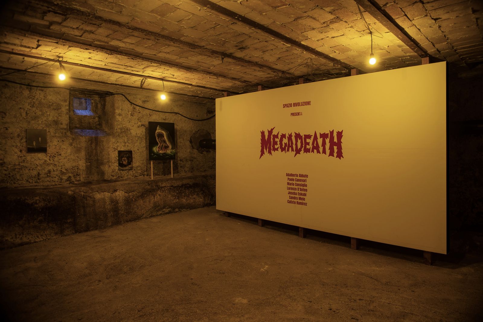 Mondi e spunti che ritornano oggi, a Roma, con la mostra inaugurale intitolata Megadeath, attesa per prossimo il 7 novembre. La citazione arriva dal contesto delle controculture Anni ’90, precisamente da quel sottogenere dell’Heavy Metal, il Trash Metal, a cui apparteneva la band dei Megadeth. Font che rivisita il logo della band e nome storpiato con l’aggiunta di una “a” che spalanca il tema della morte: così si mette il carico sulla radicalità plumbea di quei mondi, con un’ulteriore nota di cupezza infarcita di black humor. E sono quelli i temi, tra apocalissi contemporanee, guerre, precipizi, tenebre, in una mistura di energie punk, distorsioni metalliche, enfasi e ribellismo hardcore.