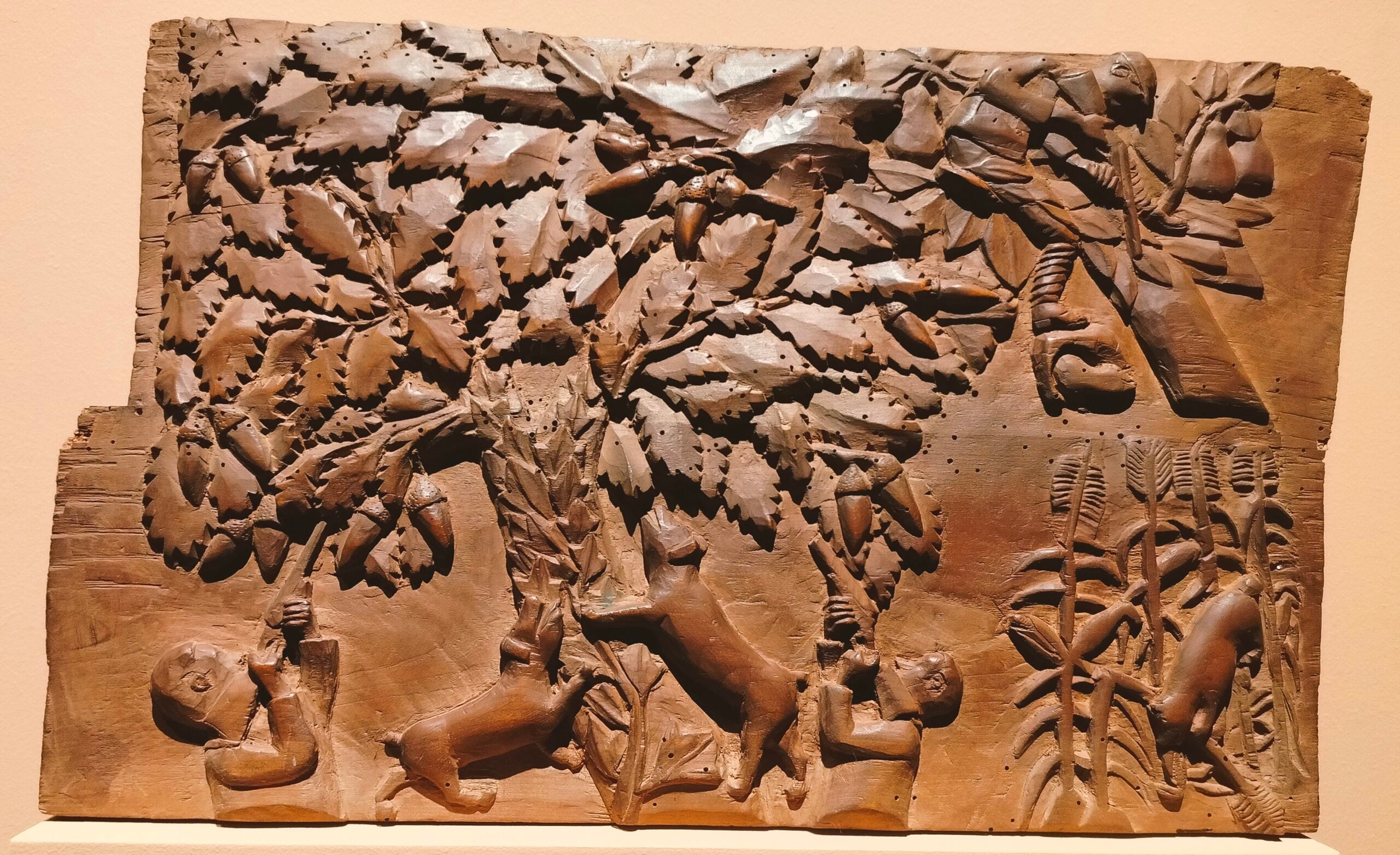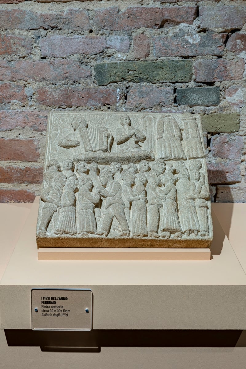 E sono 50 le sculture esposte a Siena, che lui aveva l’abitudine di definire “quadri”, così come preferiva al termine “scolpire” il più prossimo “lavorare”. Due dettagli che raccontano qualcosa di questa sua attività senza pretese, senza ambizioni, concreta come il sacrificio legato al mestiere; una pratica che procedeva per cumuli di immagini, quasi fossero pitture: non era il rapporto dell’oggetto con lo spazio a interessarlo, quanto la finalità narrativa e mimetica, la possibilità di tradurre il racconto in rappresentazione. E si tratta in effetti, quasi sempre, di bassorilievi, teatrini aggettanti con cui descrivere minuziosamente la vita contadina conosciuta da vicino: la semina, la vendemmia, l’aratura, la trebbiatura, il raccolto, la coglitura delle olive, la mondatura delle castagne (opera acquisita per l’occasione dal Museo civico di Siena). Il lavoro resta spunto prediletto, in una pratica quasi antropologica di osservazione e ricostruzione, ma non mancano i “ritratti” di animali selvatici, isolati dai contesti umani – come l’istrice e la volpe – o ancora un’allegoria delle quattro stagioni, qualche soggetto sacro (genere poco frequentato), fino a scene di vita sociale amena, come l’affresco lapideo dedicato alla festa di paese: tutte fotografie tridimensionali in cui oggetti, gesti, abiti, figure sono restituiti con cura e precisione, riuscendo a tirarne fuori una poesia sottile, antica, fatta d’innocenza. Al centro, un commosso sentimento di comunità.