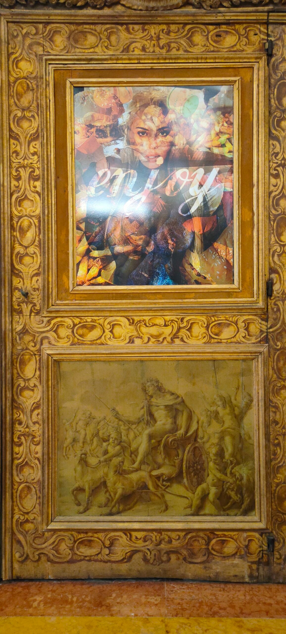 CTRL+Z è, quindi, un’esperienza volutamente eccessiva che raggiunge il suo culmine con le opere esposte nella Galleria dell’Eneide del Buonaccorsi. In questo ampio e fastoso spazio barocco, l’installazione “barocca” di Costanzo dialoga efficacemente con l’ambiente circostante, mostrando contrasto e continuità tra queste due “visioni” lontanissime nel tempo. Ma CTRL+Z non è una mostra malinconica che critica il presente per portarci a rimpiangere il passato: è un’esposizione che invita il pubblico a essere consapevole, in maniera critica, e a tratti ironica, del proprio tempo. Con la sua produzione, l’artista ci indica come ripensare alla nostra relazione con la visibilità, l’informazione, la rappresentazione e la comunicazione contemporanee, trasformando la sfrenata abbondanza di media e di immagini in opere aperte a molteplici interpretazioni.