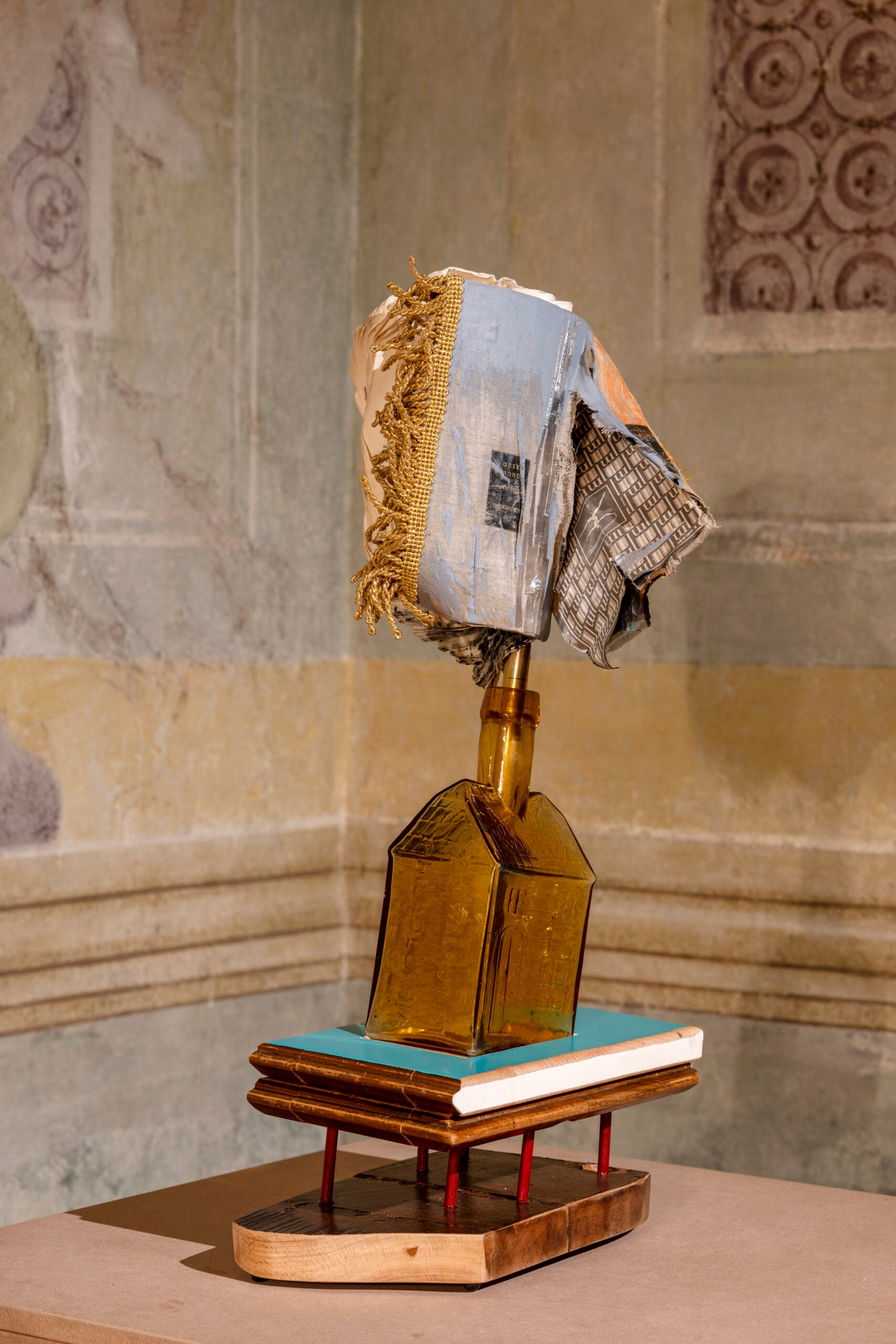 Se Kersels lavora sul fallimento della linearità, Maria Papadimitriou affronta direttamente la crisi dell’utopia moderna. Frustration of Utopia dichiara fin dal titolo una condizione storica precisa: l’utopia non è morta, ma è divenuta impraticabile nei suoi modelli novecenteschi, tramutandosi in frammento residuo, in tensione incompiuta. Il dialogo con Melencolia I di Dürer, figura chiave della crisi del sapere moderno, è qui tutt’altro che citazionista. Come nell’interpretazione benjaminiana dell’allegoria, ciò che emerge non è un sistema coerente, ma una costellazione di segni in frizione. I collage, i paesaggi sospesi, la ricostruzione dello studio e soprattutto gli ex voto costruiscono un lessico visivo che rifiuta l’idea di ritorno all’armonia. La tradizione, in particolare quella napoletana, viene trattata come archivio instabile piuttosto che romanticizzata come identità inamovibile, attraversato da perdite, trasformazioni e sopravvivenze simboliche. Gli ex voto, ibridi e liminali, divengono atti di esposizione della vulnerabilità. In un’epoca che ha visto collassare l’immaginazione del futuro, Papadimitriou si allontana dal tentativo di ricostruirla artificialmente. Ne lavora piuttosto i resti, trasformando la frustrazione in gesto critico.