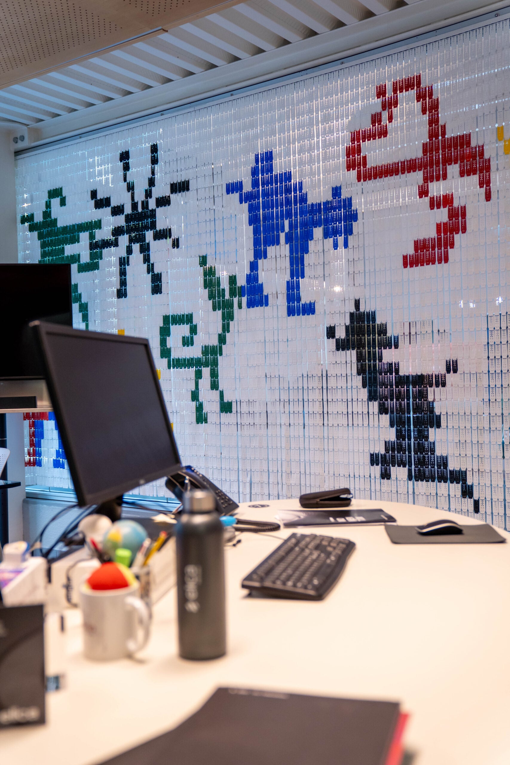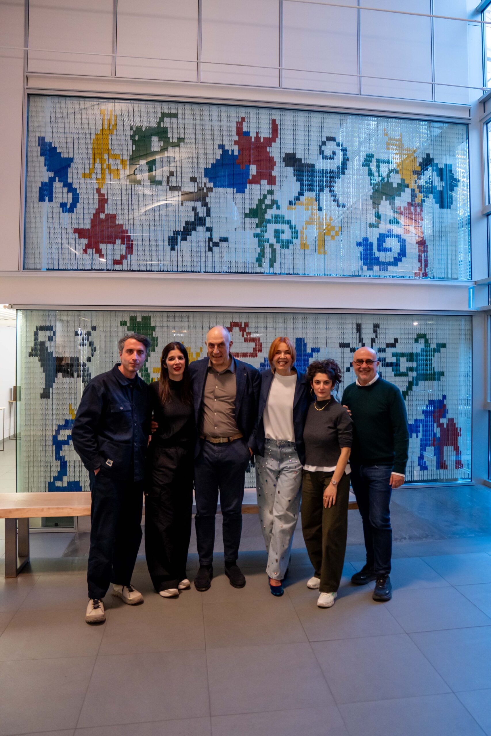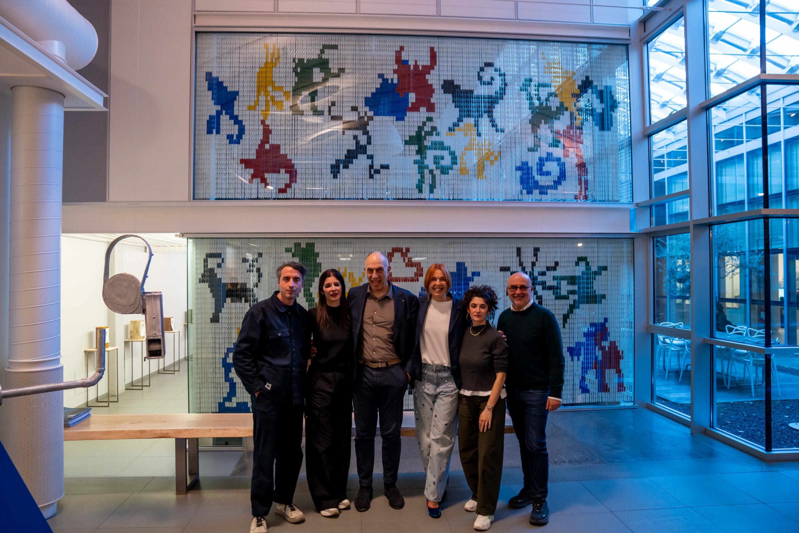 Richiama il volume Il libro degli esseri a malapena immaginabili di Caspar Henderson l’opera site specific di Numero Cromatico, il collettivo fondato a Roma nel 2011, realizzata per Fondazione Ermanno Casoli ed Elica nella sede dell’azienda a Fabriano. Con il titolo Essere a malapena immaginabili, l’opera prende forma dai contenuti emersi durante il workshop condotto dagli artisti con le persone del Gruppo Elica (tra manager e collaboratori), svoltosi il 3 e il 4 marzo 2026, articolato in una prima fase di disegno e in un’altra dedicata all’utilizzo dell’intelligenza artificiale, intesa come strumento speculativo per analizzare simboli e generare nuove connessioni.