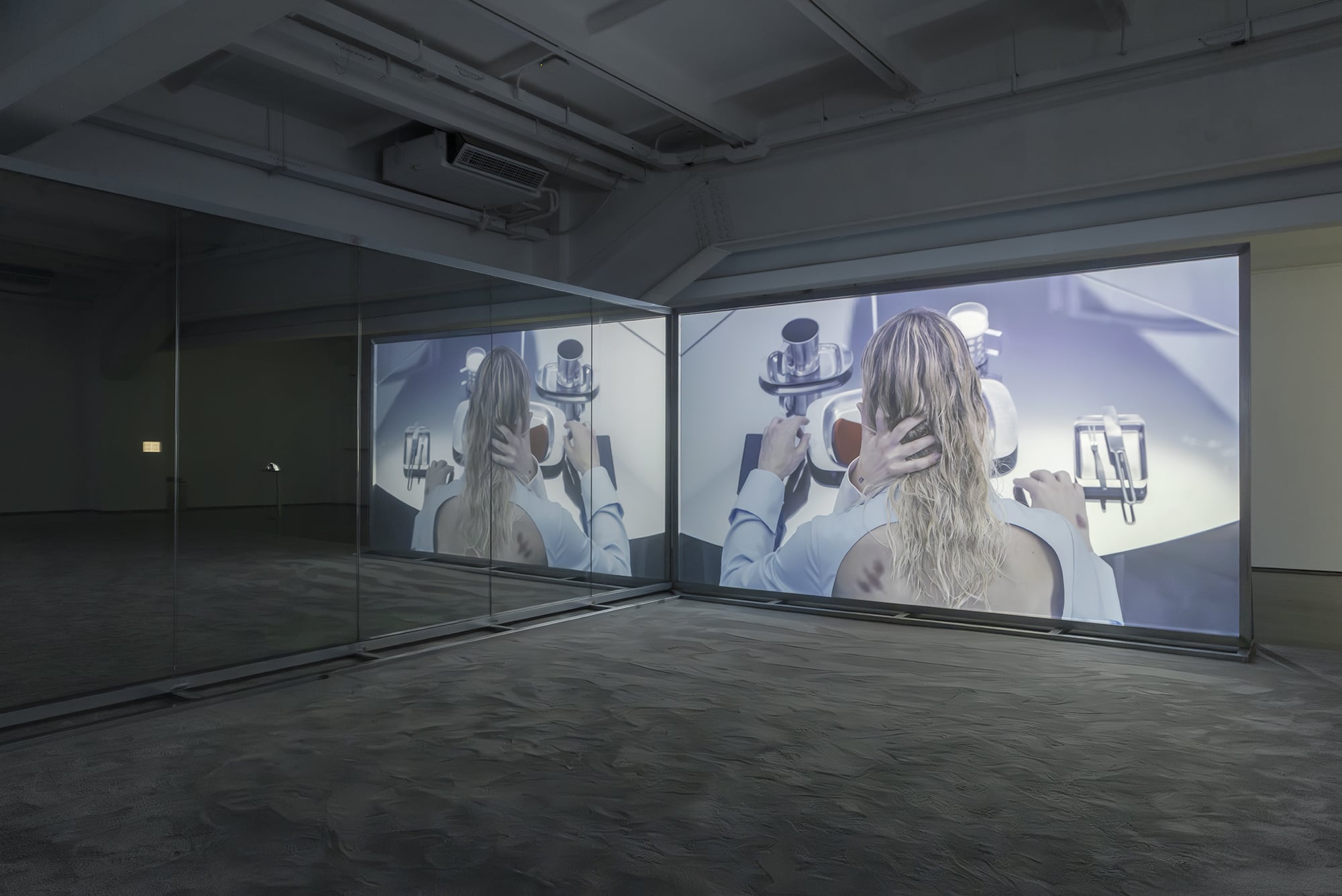 La prima personale italiana del duo polacco-lituano trasforma Basement in uno spazio ambiguo in cui si esplorano identità fluide e nuove tecnologie. Le immagini in anteprima