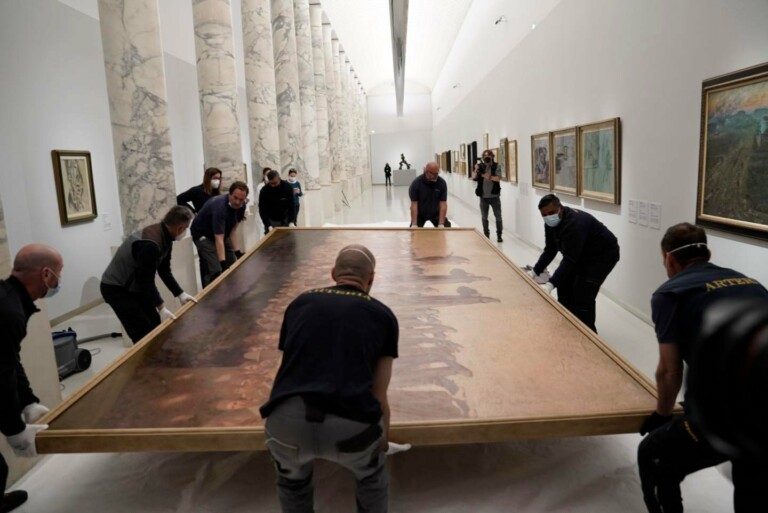 Il Quarto Stato ha un legame molto forte con la città di Milano, che lo ha acquisito per ben 50mila lire nel 1920 grazie a una sottoscrizione popolare (cioè direttamente con le donazioni dei cittadini) e conservato nella Sala della Balla del Castello Sforzesco. Esposto dopo la Seconda Guerra Mondiale nella sala consiliare di Palazzo Marino, fu spostato prima alla Galleria di Arte Moderna nel 1980, per poi approdare nel 2010 al neonato Museo del Novecento. Ecco perché non poche sono le polemiche su questo viaggio. Ora la sua partenza sarà una buona occasione per ripensarne la collocazione: la nicchia dove è stato posto, sotto una scala a chiocciola prima della collezione permanente, non è molto illuminata, e secondo l’assessore milanese alla Cultura Tommaso Sacchi ci sarà modo di concordare una nuova posizione con il direttore o la direttrice del nuovo Polo museale Otto/Novecentesco, la cui nomina cadrà proprio nel prossimo mese. Il prestito gratuito – frutto di un accordo tra i sindaci dei due capoluoghi, Giuseppe Sala e Dario Nardella, che vedrà il dipinto rimanere a Palazzo Vecchio fino al 30 giugno – è solo metà di uno scambio tra Firenze e Milano, a cui corrisponderà un’opera “da giù” non ancora nota (tra le lamentele dei milanesi) ma che sarà, stando a Sacchi, “all’altezza delle aspettative”. Insomma si conferma l’amicizia e lo scambio culturale tra due città; si effettua un lavoro di controllo, manutenzione e diagnostica sul dipinto; si predispone una nuova esposizione a Milano finalmente più degna e ci si appresta ad ospitare un capolavoro fiorentino. Potrebbe non essere un’operazione sciagurata come molti vogliono lasciar credere.