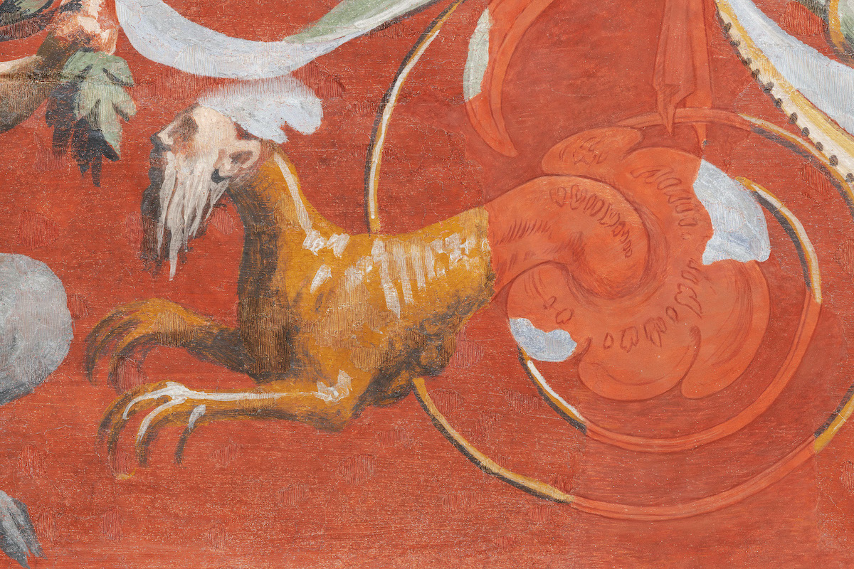 Nella Sala del trono è stato innanzitutto eseguito un de-restauro del restauro fatto nel 1953 da un’equipe italiana. La decorazione del soffitto risultava molto più scura rispetto a ciò che emerso dopo la campagna che, iniziata nel luglio 2019 si è conclusa solo un mese fa. A settembre e ottobre inizierà invece il restauro delle lunette con le figure dello zodiaco. Per quanto riguarda la scena centrale, l’affresco raffigura l’episodio della Nekuia, dal canto XI dell’Odissea. Ulisse è nella reggia dei Feaci. Deve consultare l’oracolo Tiresia per trovare la strada di Itaca. Ma come mai viene dato così tanto risalto a tale episodio e chi può essere stato ad eseguirlo? Così risponde ad Artribune Julia Greiner responsabile tecnica del restauro: “L’unica pista che abbiamo è una gratificazione datata 1547 a nome di Nicolosio Granello. Sappiamo che lavorò con i fratelli Semini, è nato a Pieve di Teco nella provincia di Imperia. L’ipotesi è che potrebbe aver capitanato i lavori dell’atelier genovese alle prese con il ciclo pittorico. Tuttavia, non sono noti suoi precedenti affreschi in scala monumentale! Probabilmente per la sala del trono la mano è diversa”.