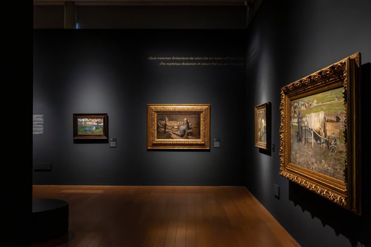 Dedichiamo qualche riga anche all’allestimento, firmato dall’artista e fotografo italo-palestinese Mustafa Sabbagh (Amman, 1961) che ha raccontato in esclusiva ad Artribune la sua esperienza: “L’incarico è nato dalla pluriennale frequentazione con Barbara Guidi che ha sempre dimostrato interesse verso la mia produzione artistica, la mia sensibilità estetica e il mio approccio non esclusivamente tecnico agli allestimenti di mostra”. Sabbagh non è nuovo ai progetti di allestimento, tuttavia è la prima volta che si confronta con l’arte antica, alla quale si è avvicinato con assoluto rigore filologico e rispetto per la stratificazione del tempo. “Ho basato il mio approccio sull’esperienza visiva e sensoriale – spiega l’artista –, per valorizzare la ricerca sulla luce e il cromatismo divisionista. La maggior difficoltà, risolta grazie al dialogo costante con lo staff del Museo, è stata unire la spiritualità alpina delle opere esposte con l’architettura museale. Credo che gli aspetti più riusciti dell’allestimento siano la fluidità del percorso di visita e il modo in cui abbiamo lavorato sulla luce per mettere in risalto l’empirismo ottico di Segantini”.